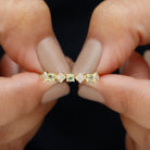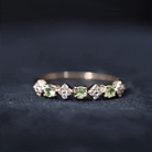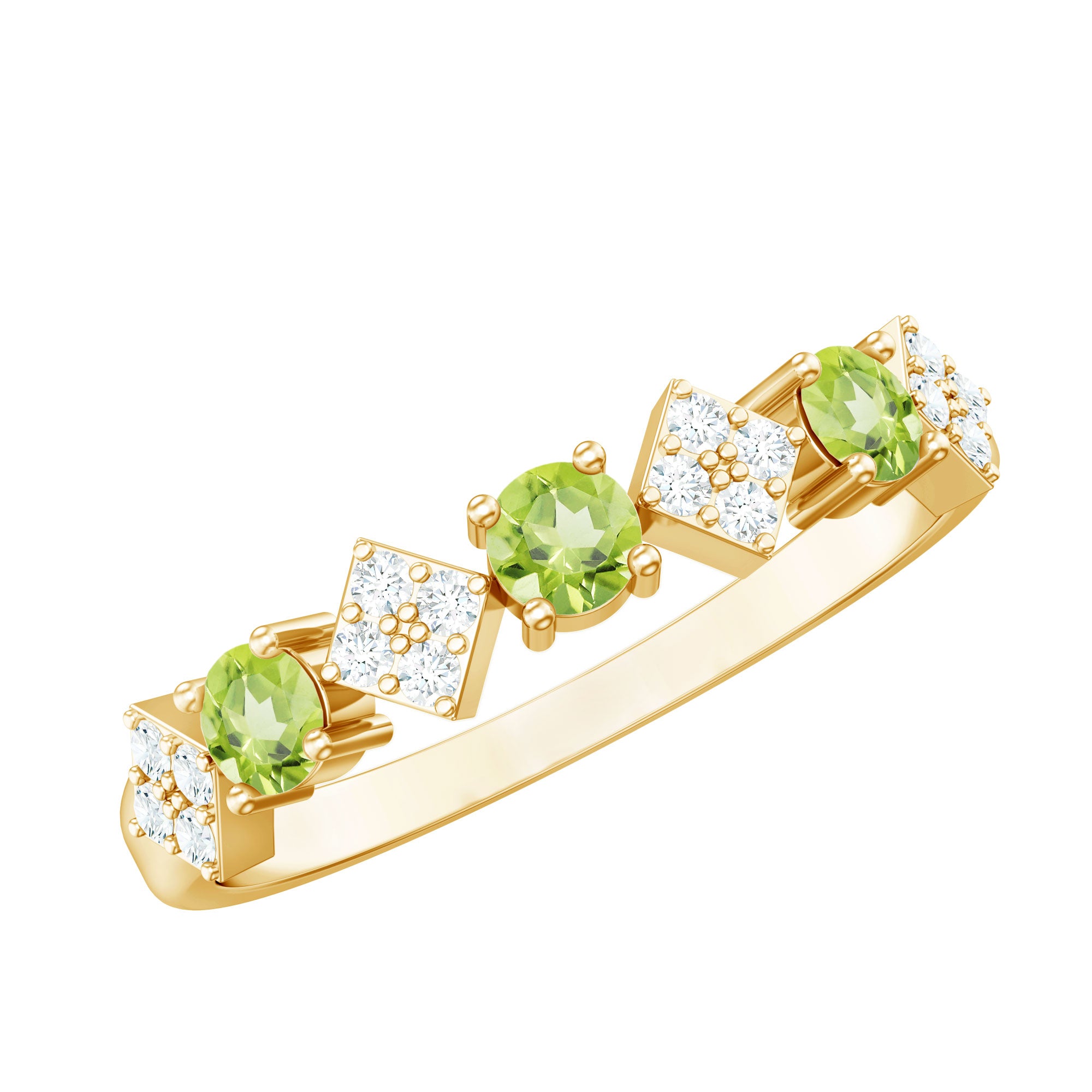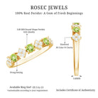 This stunning half-eternity ring features a row of genuine peridot gemstones alternating with sparkling diamonds. The peridots are a vibrant green color, and the diamonds add a touch of luxury. Peridot is a beautiful gemstone that has been prized for centuries. It is also known for its healing properties and is said to bring good luck and prosperity. This genuine peridot and diamond half-eternity ring is the perfect way to show someone special, how much you care. It is a beautiful and timeless piece of jewelry that will be cherished for years to come.