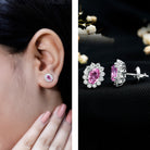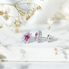 Genuine Pink Sapphire Halo Stud Earrings with Diamond