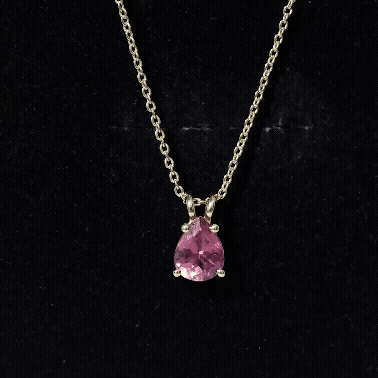 Genuine Pink Tourmaline Teardrop Necklace with Silver Chain