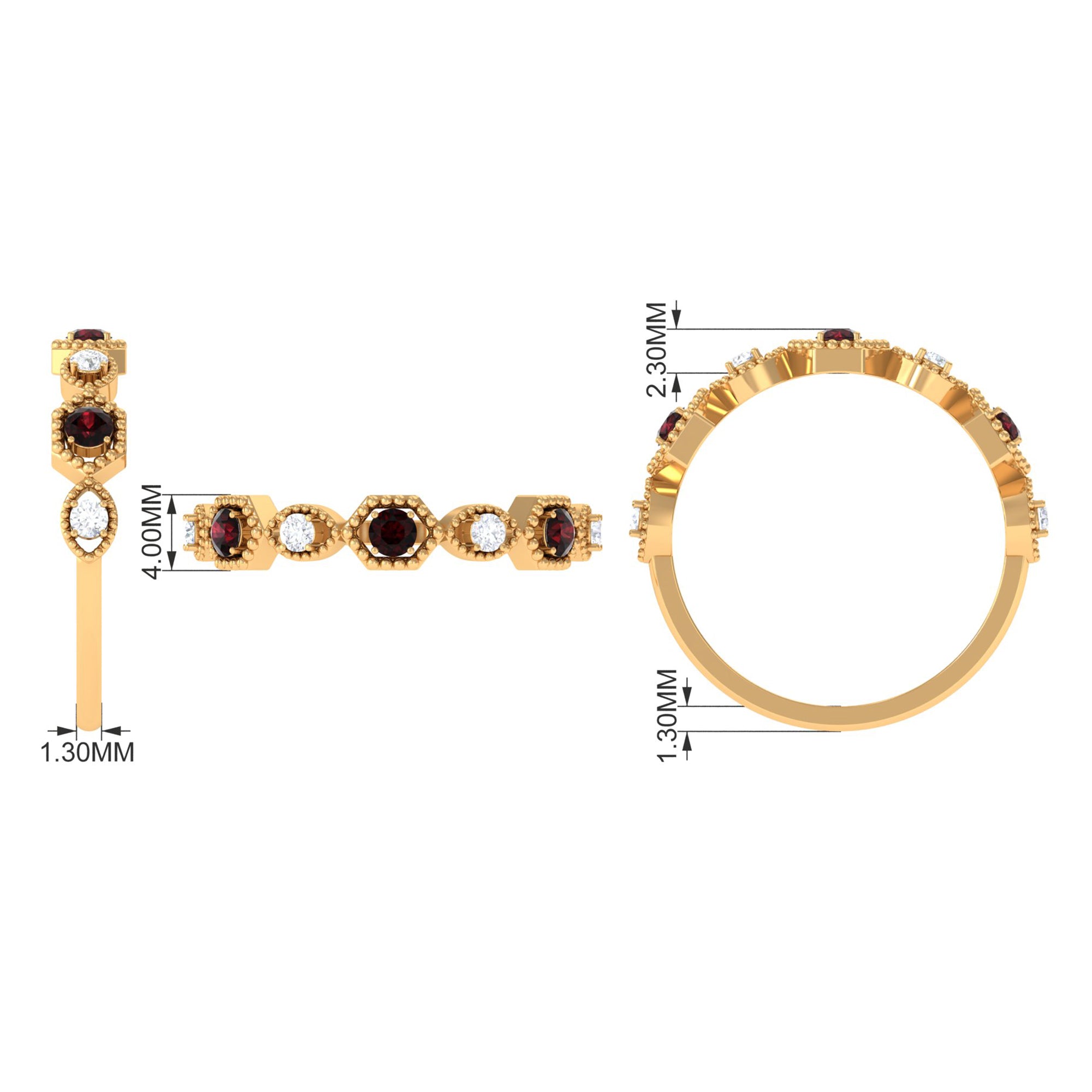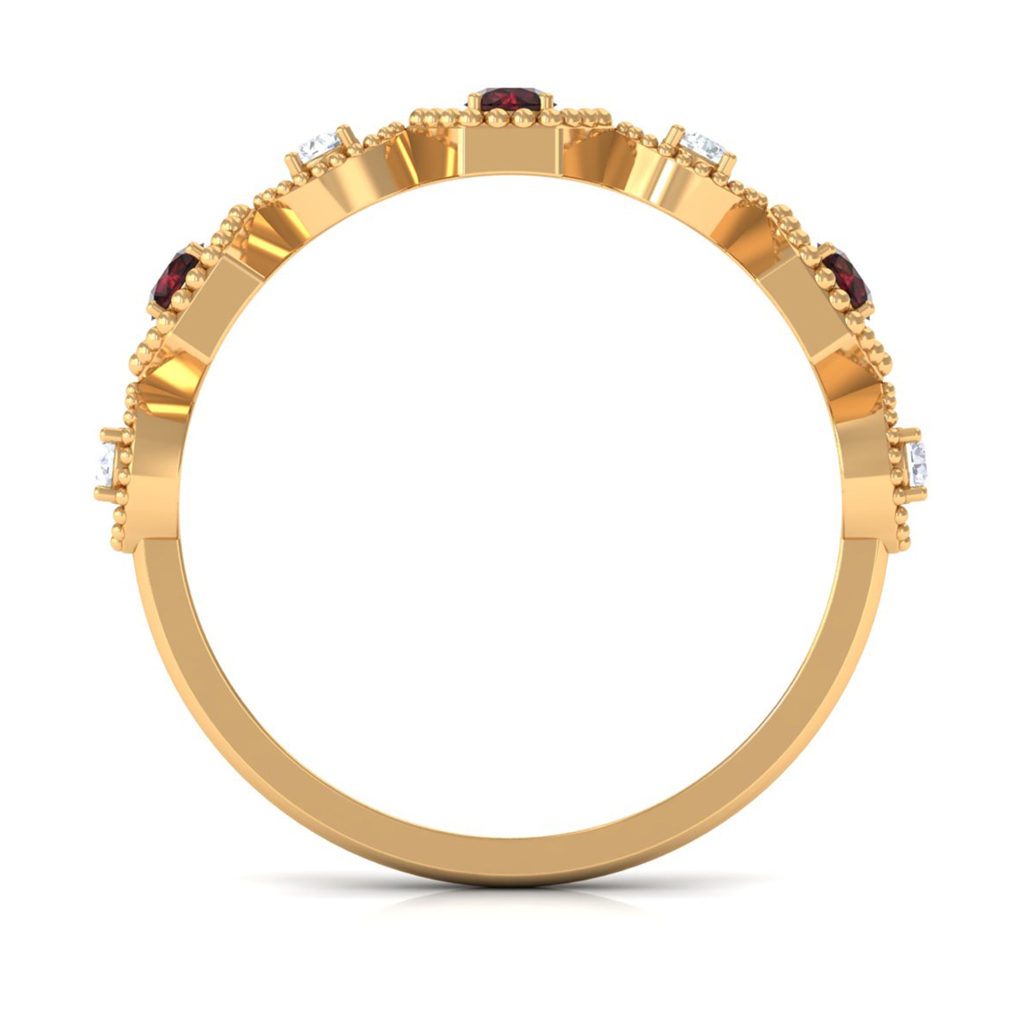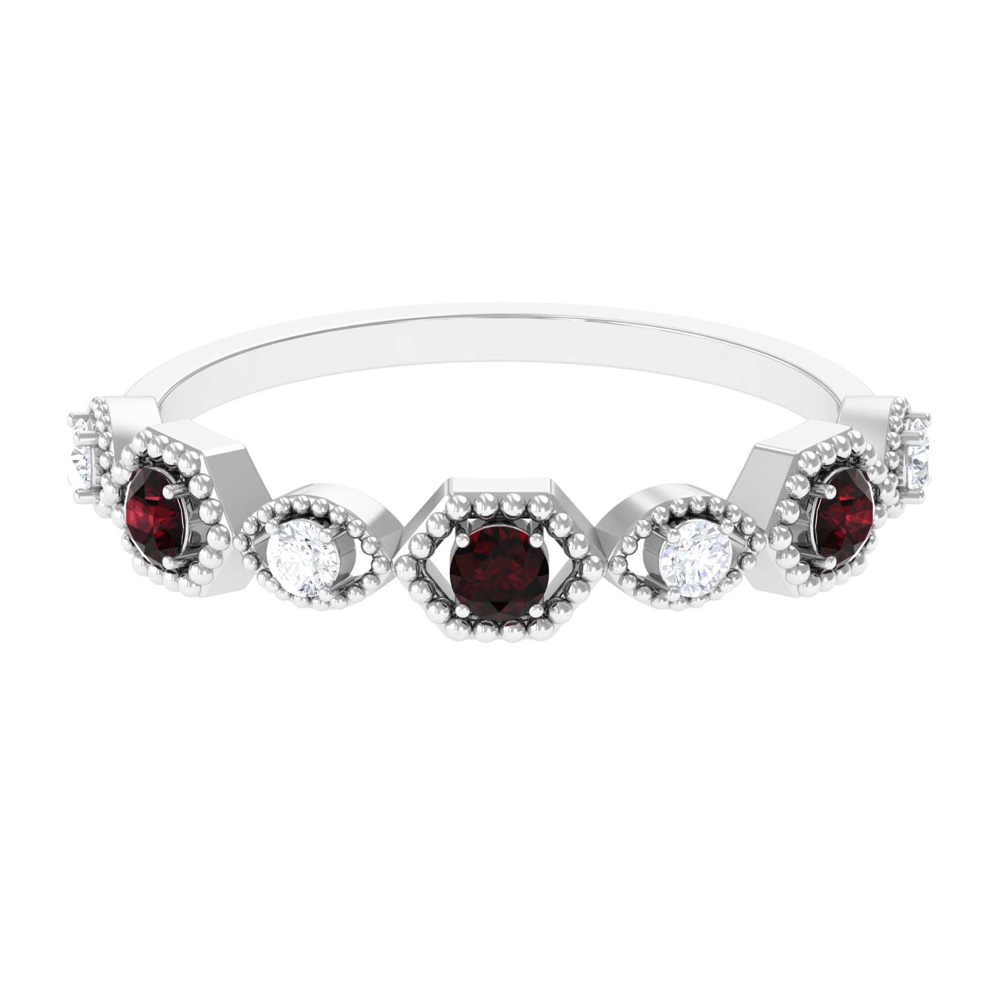 Indulge in a love story that feels both timeless and beautifully unique with this Half Eternity Ring. Designed with graceful Beaded Detailing and striking geometric patterns, it blends classic romance with modern charm in a way that instantly captures the heart. The deep red AAA Quality Garnet stones glow with warmth and devotion, while the delicate HI-SI Quality Diamond stones add a soft, irresistible sparkle, together creating a harmony that feels full of meaning. Worn alone or paired with other favorites, this Garnet Eternity Ring carries a quiet elegance that makes every moment feel a little more special. Presented in a signature jewelry box, this Garnet Diamond Ring arrives ready to be gifted with love and excitement, perfect for celebrating a promise, an anniversary or a memory meant to last. Romantic, thoughtful and artistically detailed, this Red Garnet Ring becomes a tender reminder of love that continues to grow, day after day.