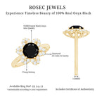 Inspired by nature’s delicate beauty, this Black Onyx Flower Ring brings a fresh and graceful touch to any jewelry collection. At the heart of the design lies an 8 MM round cut black onyx, carefully set in secure 6-prong setting. Its black hue creates a stunning contrast against the bright sparkle of the surrounding diamonds, drawing the eye and adding depth to the overall look. Framing the center stone is a floral halo made up of brilliant round diamonds. The Black Onyx Engagement Ring captures the charm of a blooming flower. Thoughtfully designed for both comfort and visual appeal, it is a ring that feels just as lovely to wear as it looks. Whether you are marking a special occasion or simply want a ring that reflects your style and story, this design offers a wonderful mix of classic and modern elements. The combination of AAA quality onyx and sparkling HI-SI quality diamonds gives it a bold yet gentle presence, perfect for daily wear or memorable moments. Carefully crafted with quality materials and attention to detail, this Floral Engagement Ring stands as a symbol of growth, love, and timeless charm, something to treasure for years to come. This Black Onyx and Diamond Ring arrives ready to gift in elegant packaging.