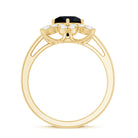Genuine Round Cut Black Onyx Flower Engagement Ring with Diamonds