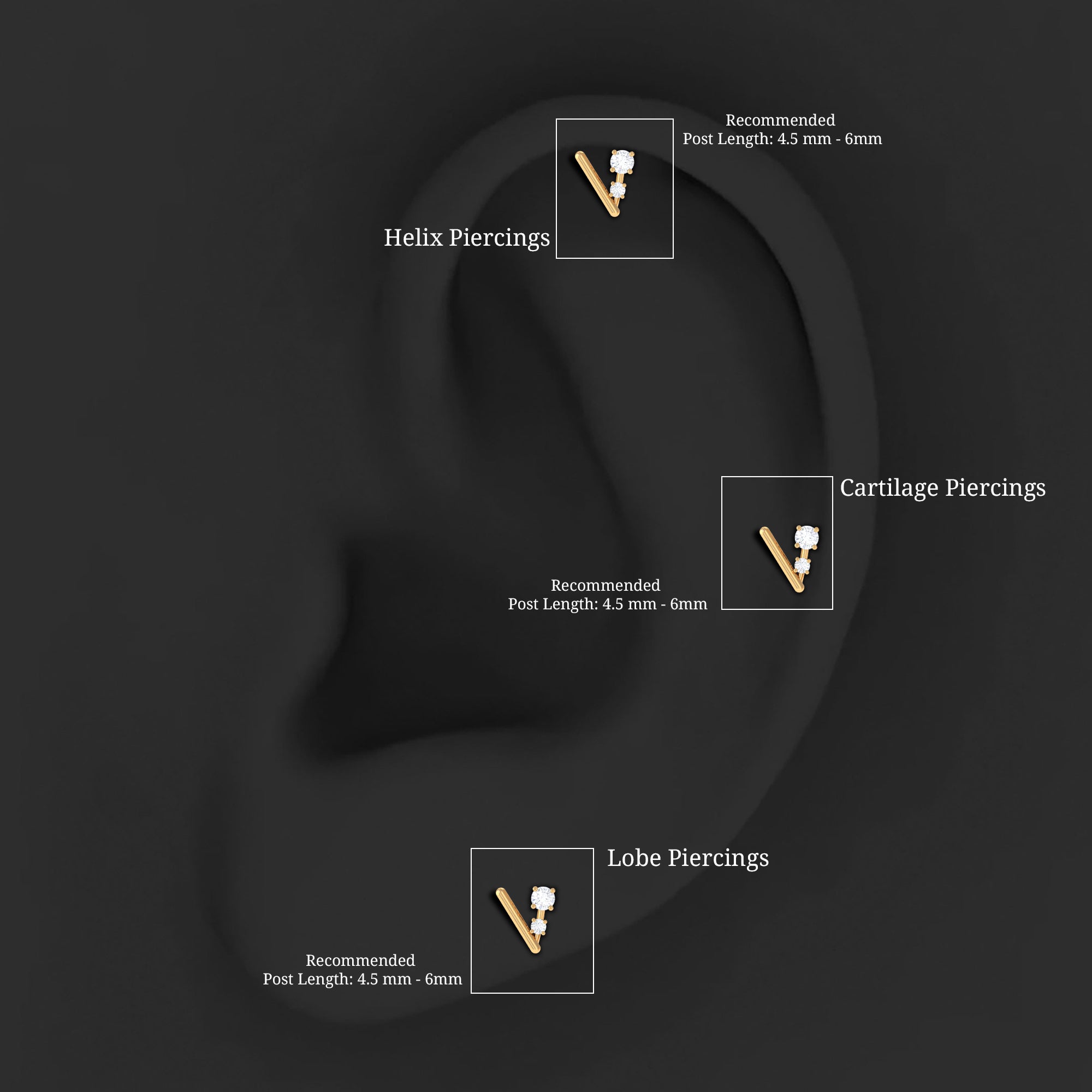 Introducing the Diamond Chevron Earring, a perfect addition to your holiday look. Featuring two Round Cut Diamonds in Prong Setting on a unique V-shaped Gold frame, making it an attractive and attention-grabbing piece of jewelry. You can wear this Diamond Earring on your Helix, Cartilage, or Upper Lobe Piercings, and customize it with a Flat Back Closure to keep it securely in place. Surprise your loved one with this beautiful Diamond Helix Earring as a thoughtful gift, so they can add it to their casual or dressy outfits and shine at any event.