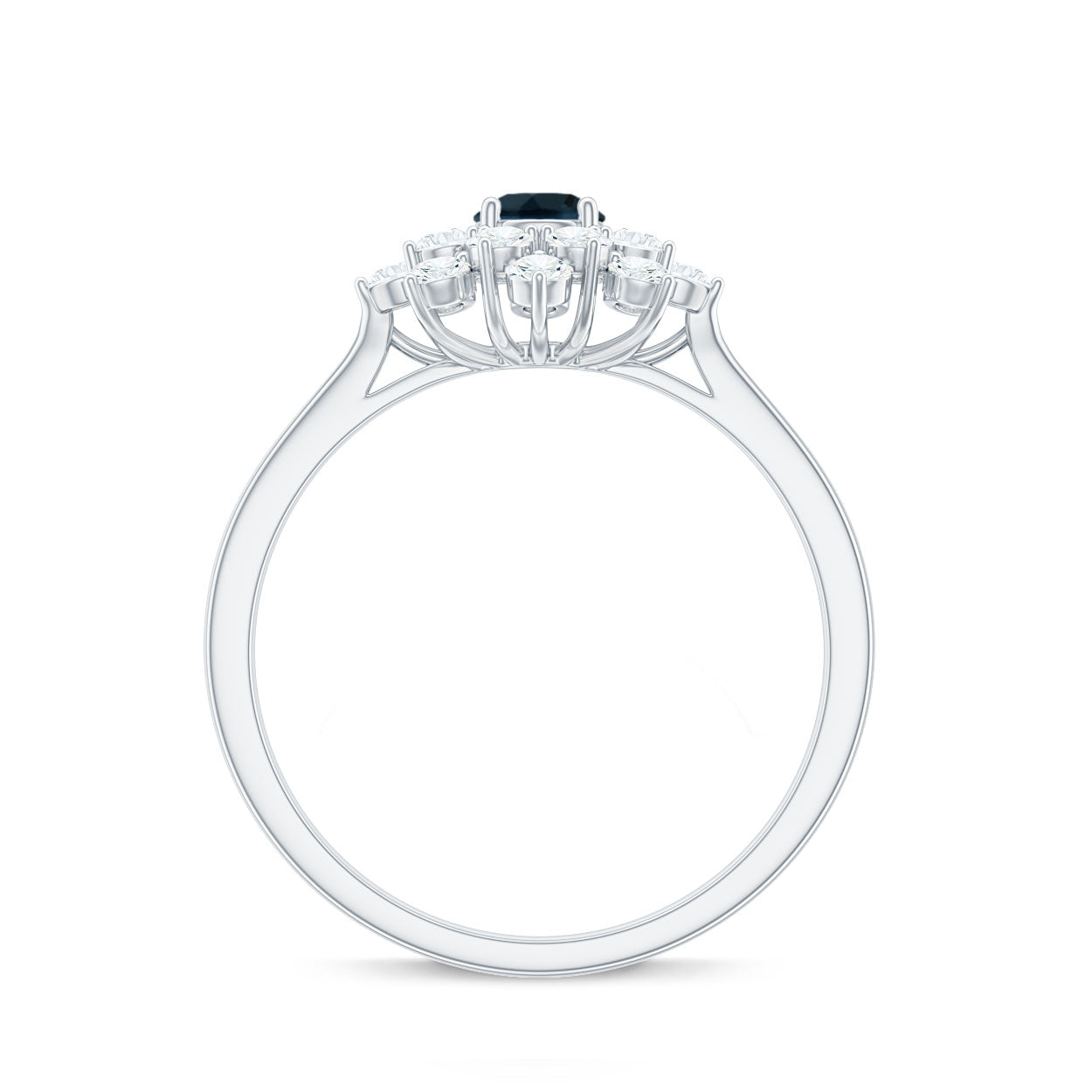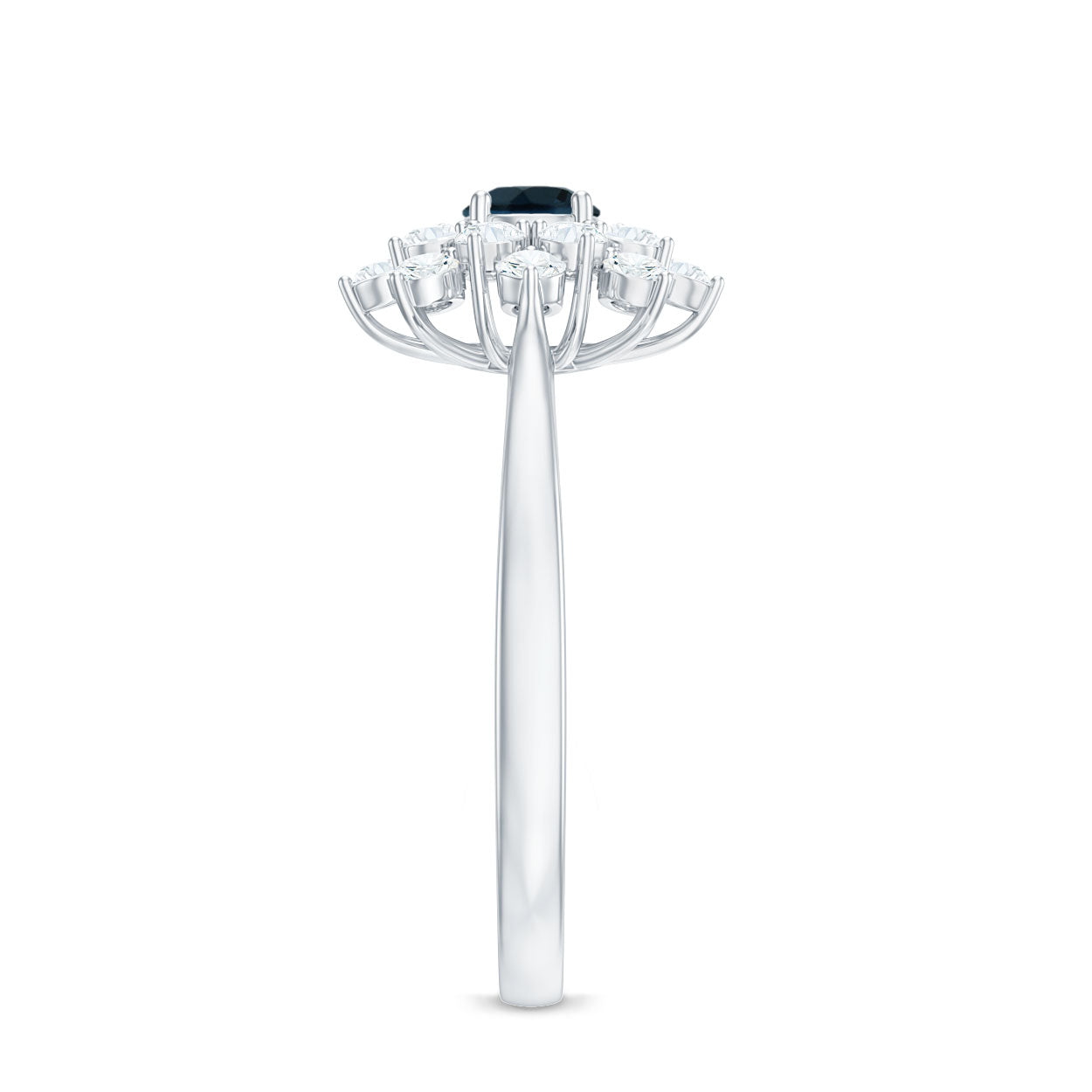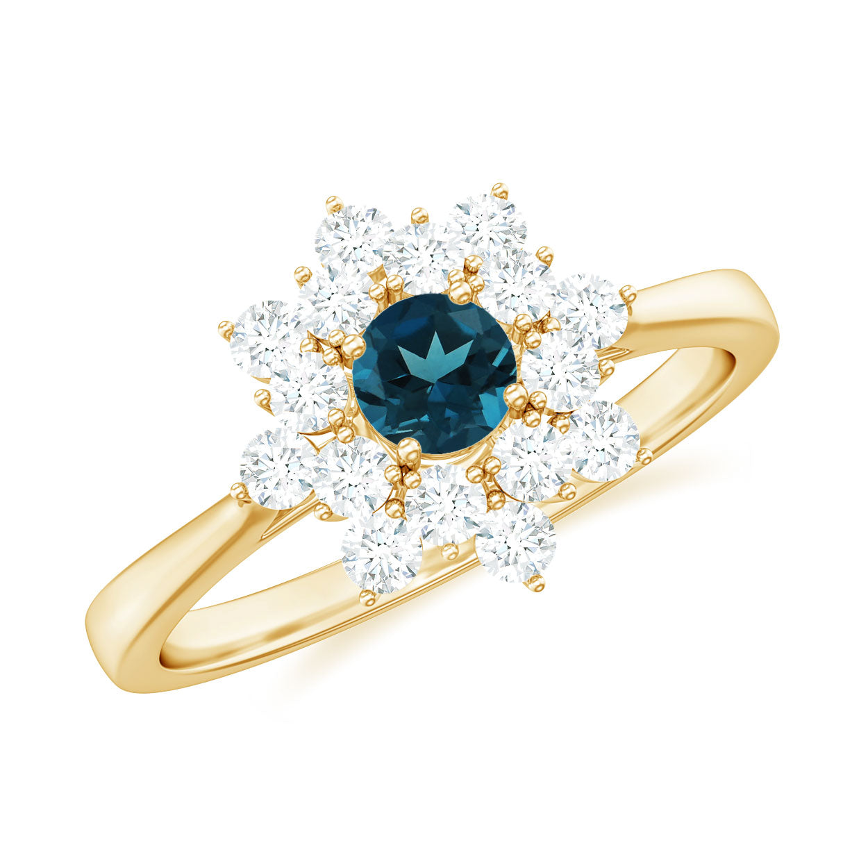 Genuine Round Cut London Blue Topaz Flower Engagement Ring with Diamonds