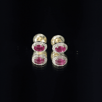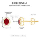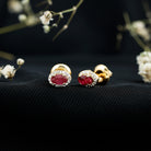 Genuine Ruby Stud Earrings with Lab Diamond Halo