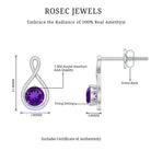 Genuine Solitaire Amethyst Infinity Earrings with Screw Back