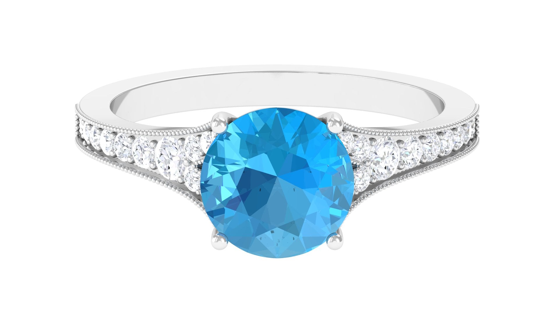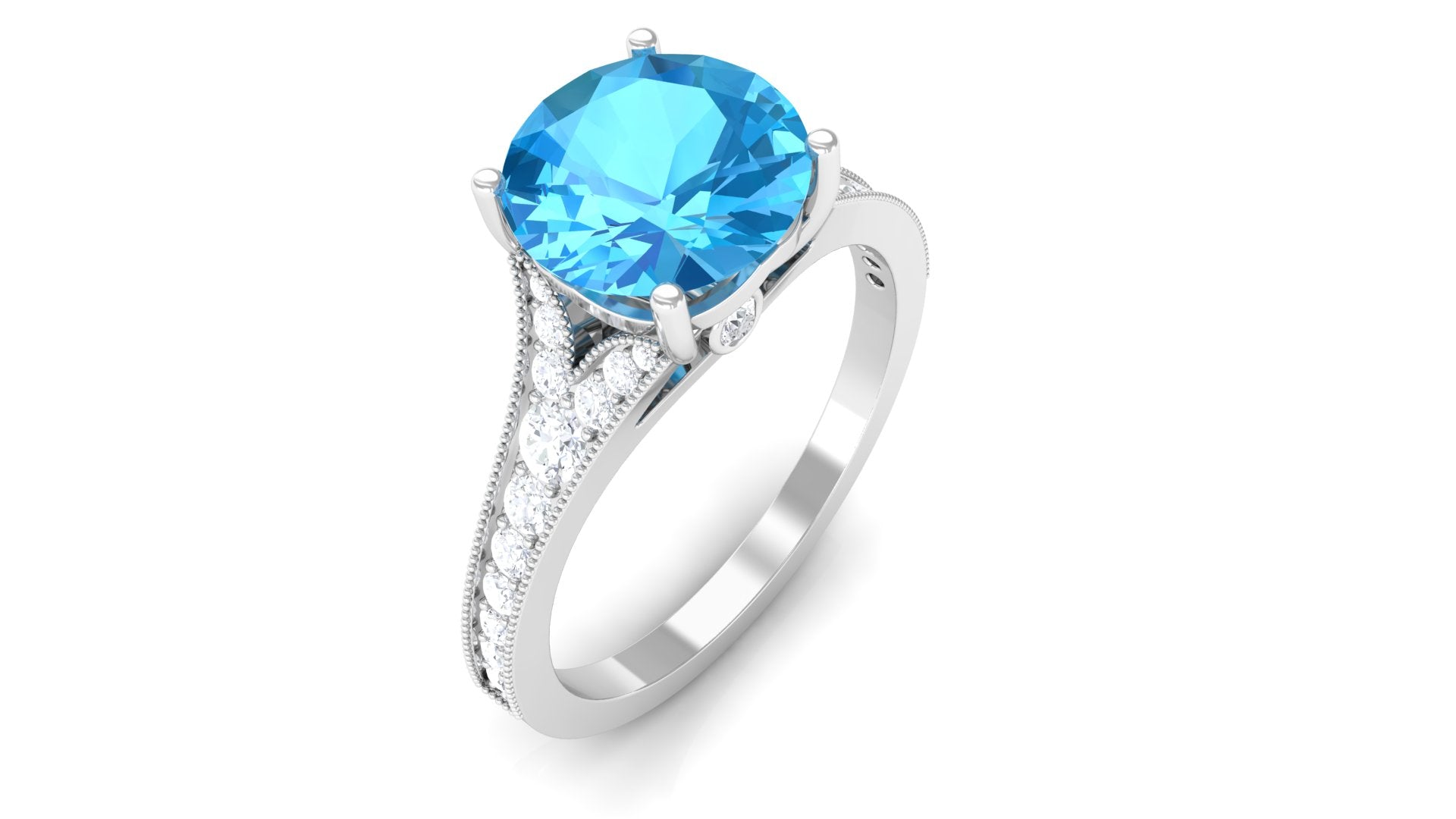 Genuine Swiss Blue Topaz Engagement Ring with Diamond Side Stones