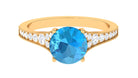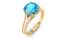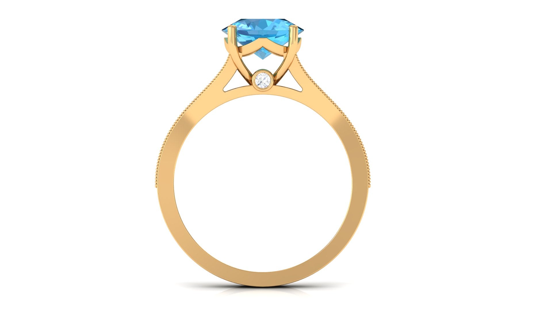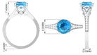This Engagement Ring is embellished with Round Shape Swiss Blue Topaz as Solitaire with Solid Gold in 4 Prong Setting with round shape Diamond in a Side Stones and as Hidden Style in Bezel Setting. The Cathedral Engagement Ring is perfect to propose your lady love this Valentine.