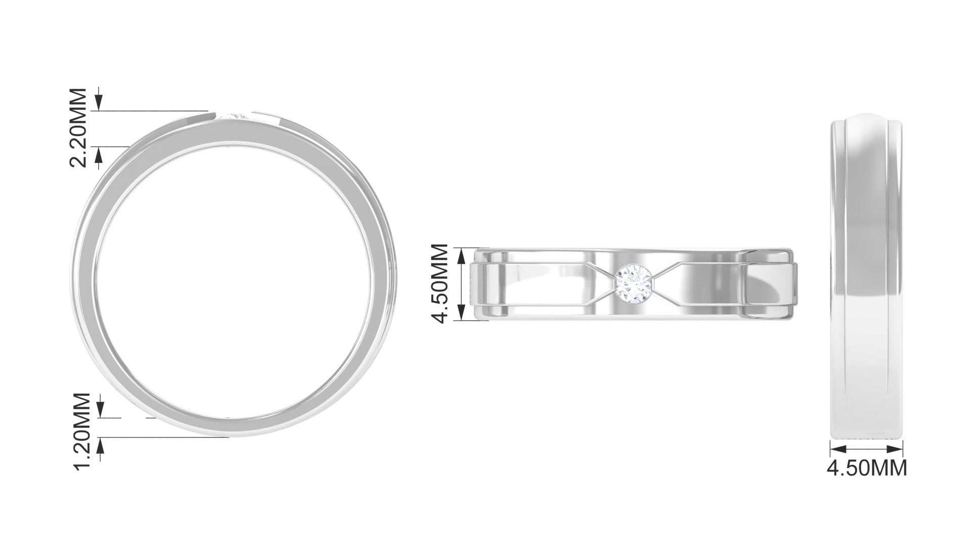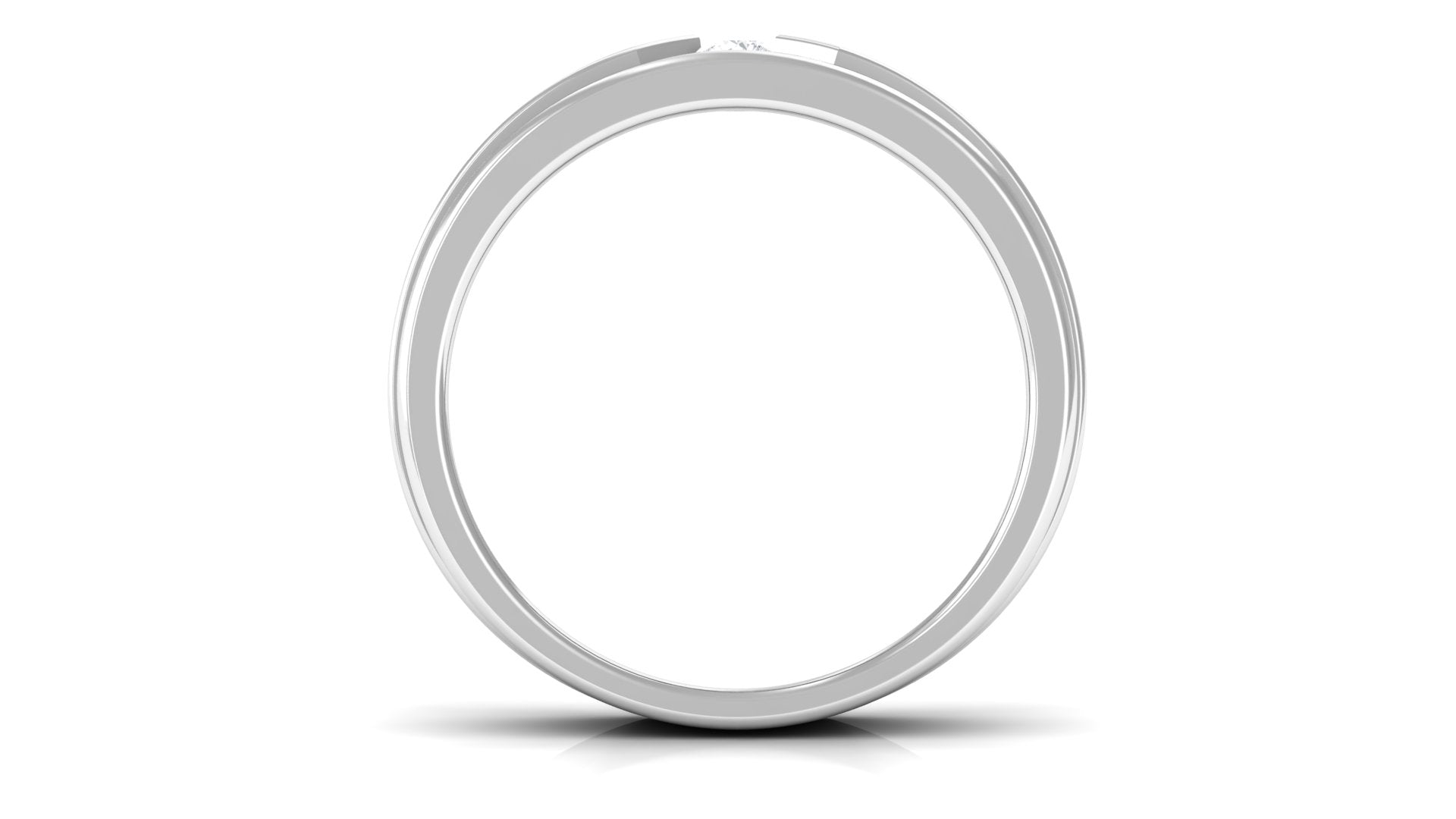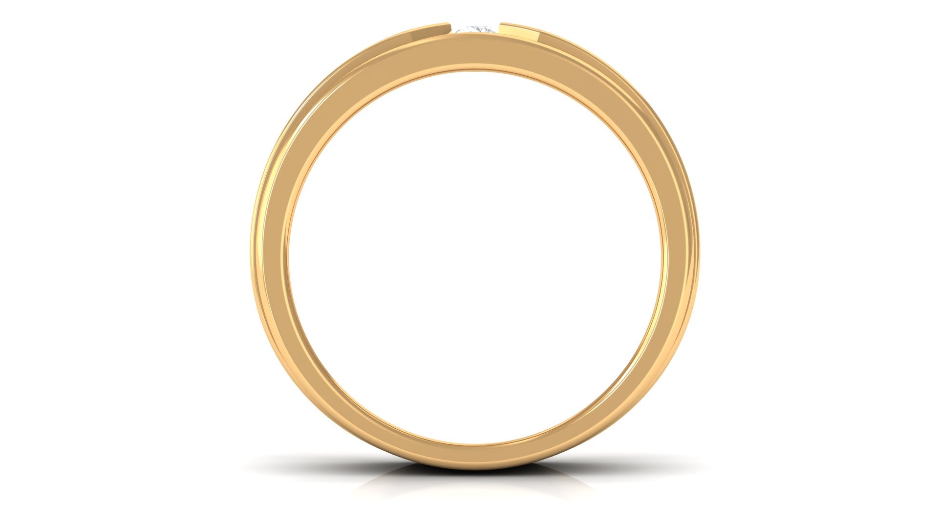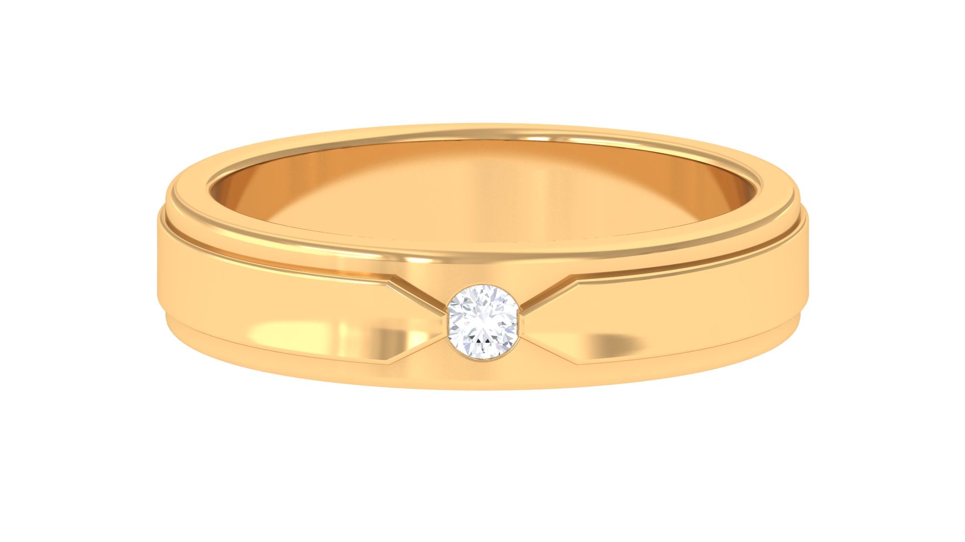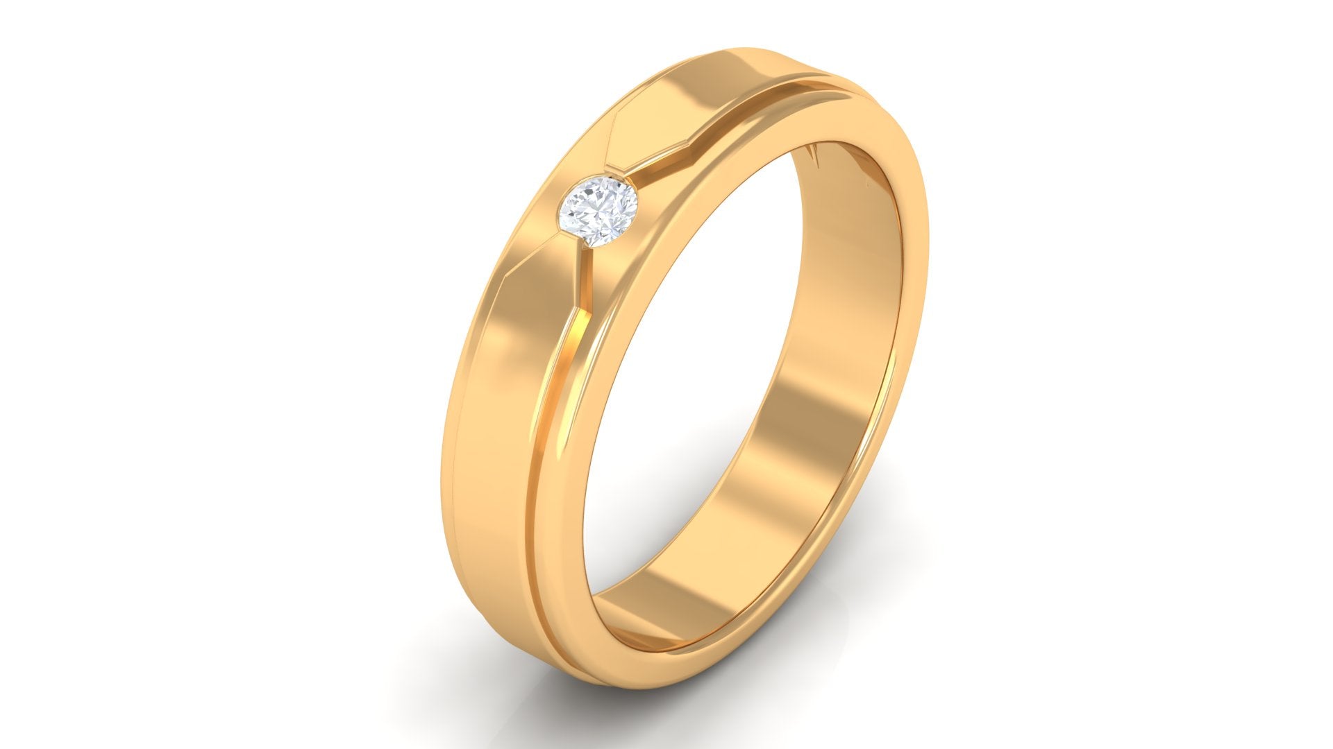 Surprise your man with this stunning Diamond Band Ring and show him how much you appreciate him. The Wedding Band Ring is composed in shining Gold and features a Round Shape Diamond set in flush setting in the center of unique arrow like design making it an exquisite choice for your partner.
