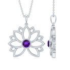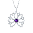 Gold Lotus Flower Solitaire Amethyst Pendant Necklace