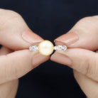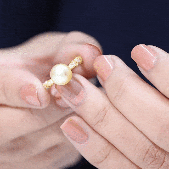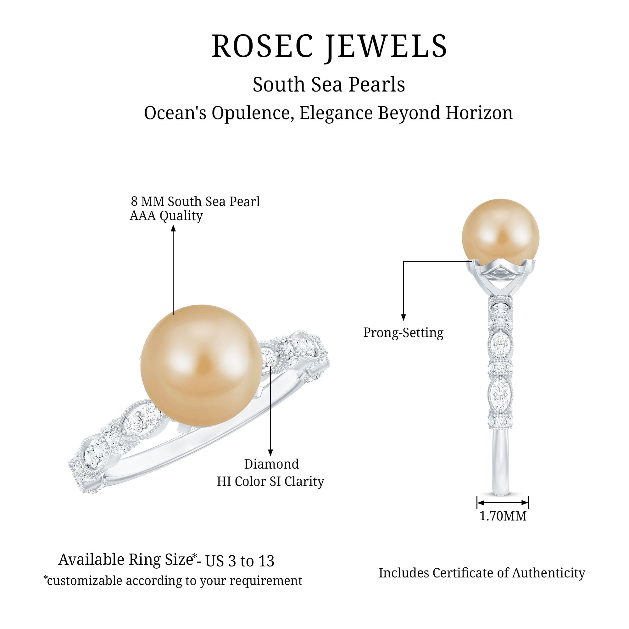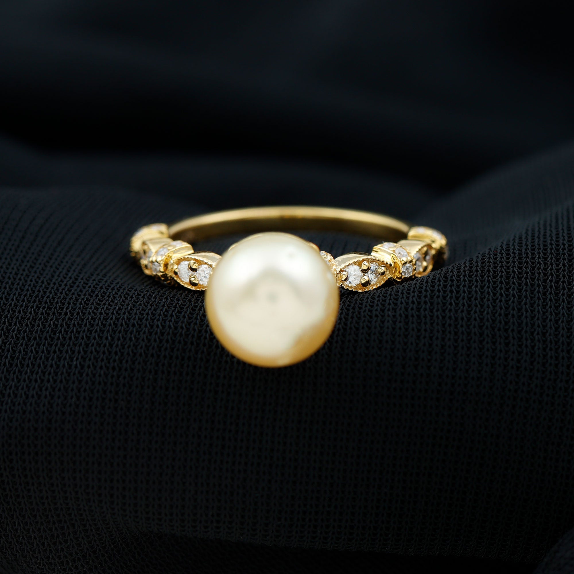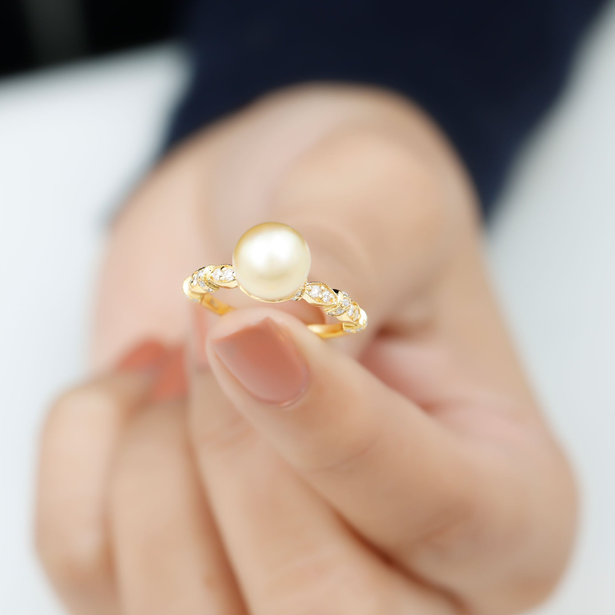 The scintillating Golden South Sea Pearl looks captivating, and round Diamond is held as side stones. This Pearl Engagement Ring is accentuated with beaded details. Illuminate your character with this Golden South Sea Pearl Engagement Ring and flaunt it your way.