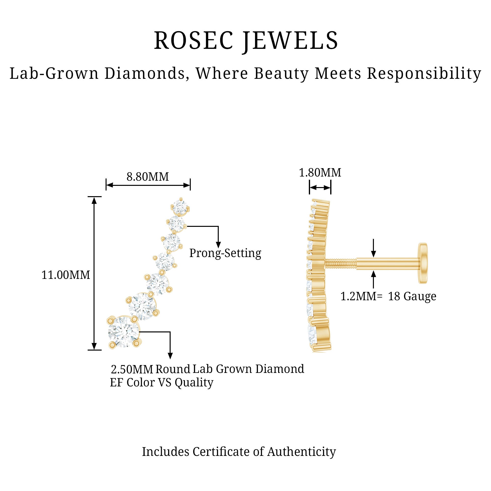 Want to steal the attention of the crowd? This stunning Graduated Diamond Climber Earring is the perfect way to do so. The piece features graduated style round diamonds all secured in prong setting, making this earpiece more attractive and appealing to look at. You can wear this Diamond Crawler Earring on your multiple piercings including, Helix, Cartilage, and Upper Lobe Piercing. Pair this with your attire to get yourself highlighted, also it can be the perfect gift for your special ones. Each diamond is carefully selected for its HI color and SI clarity, giving the piece a radiant glow that enhances your natural elegance. This Diamond Ear Climber combines contemporary fashion with timeless beauty. This Diamond Helix Earring is a stylish choice for fashion-forward individuals who want to express their personality through elegant details. Beautifully packaged in our signature jewelry box, this Curved Helix Earring is an exquisite addition to any jewelry collection.