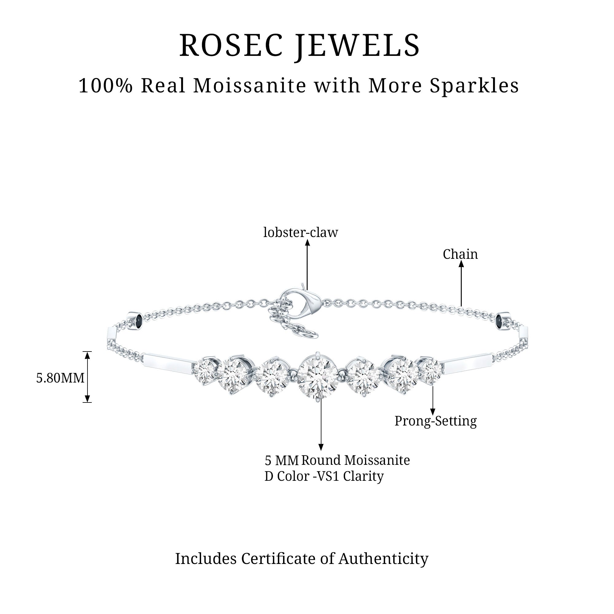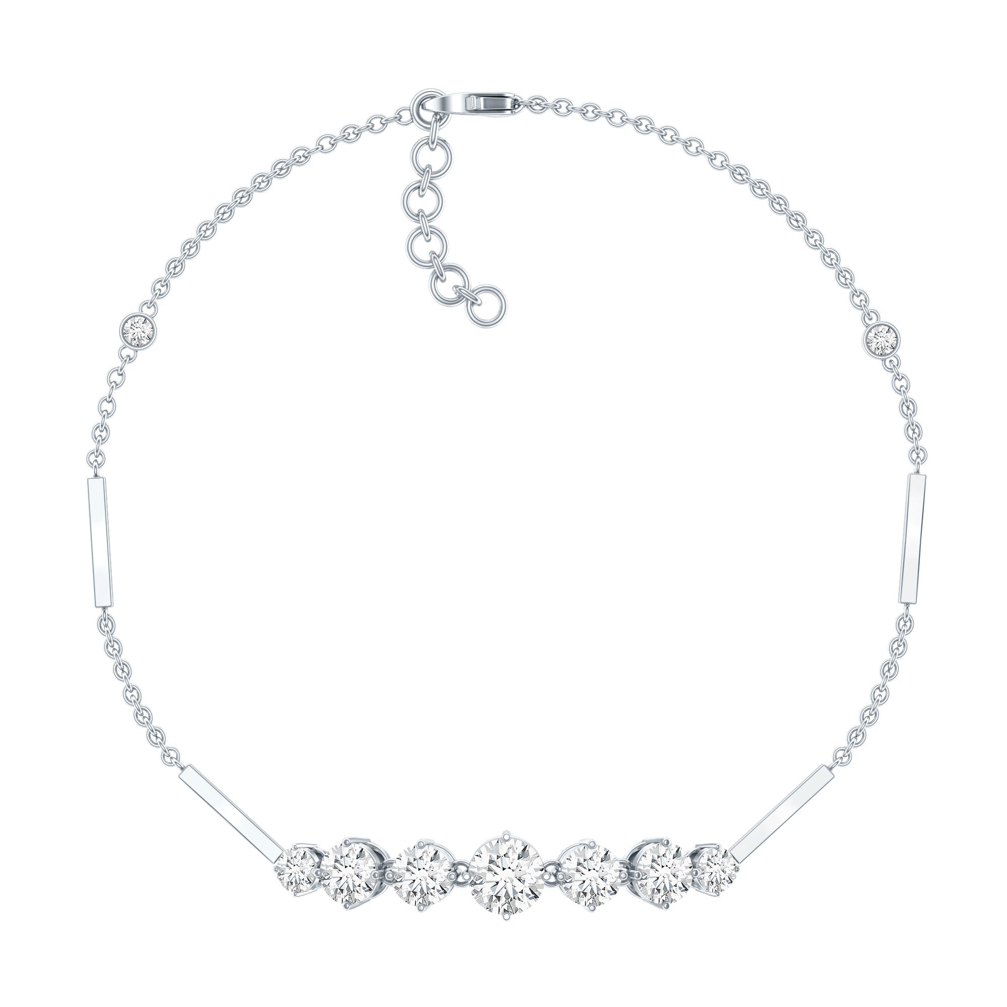 Graduated Style Round Moissanite Link Chain Bracelet for Women