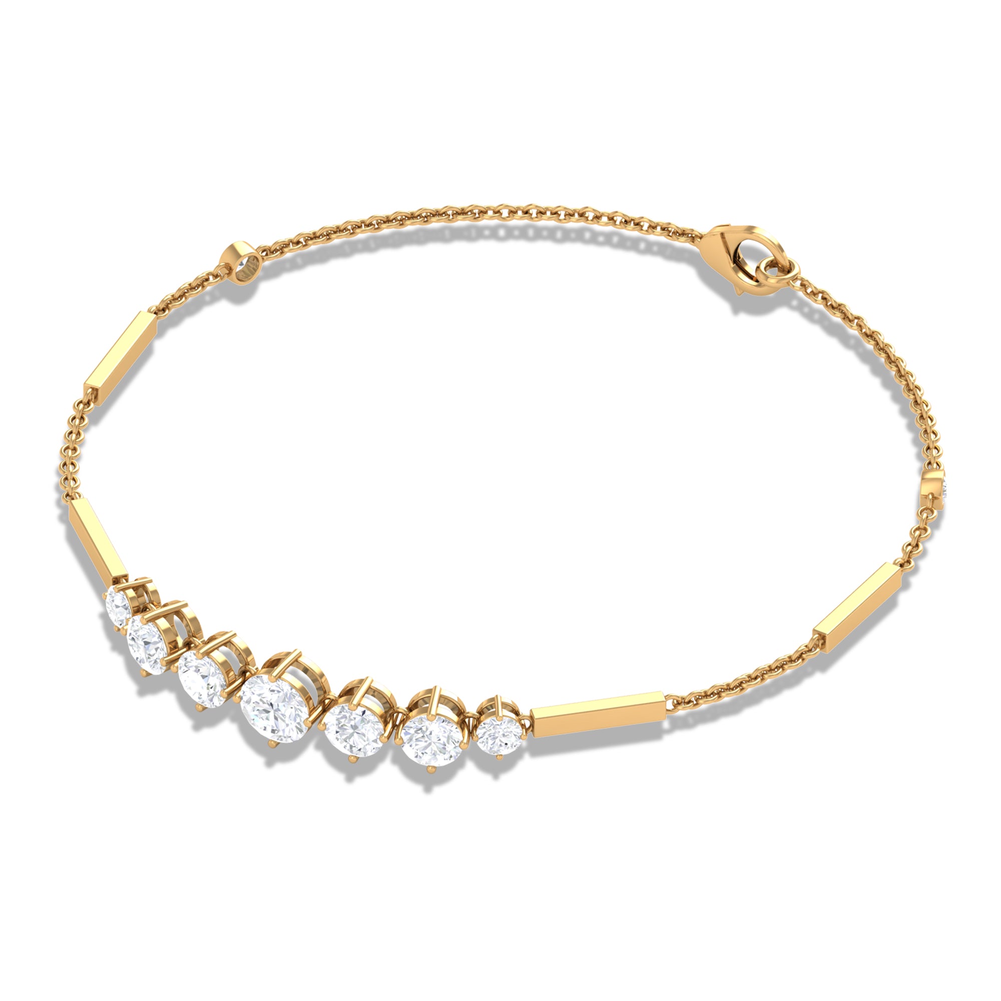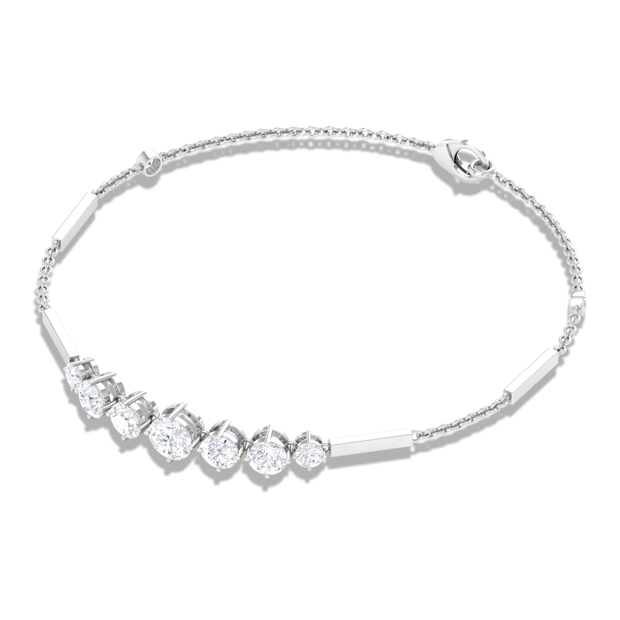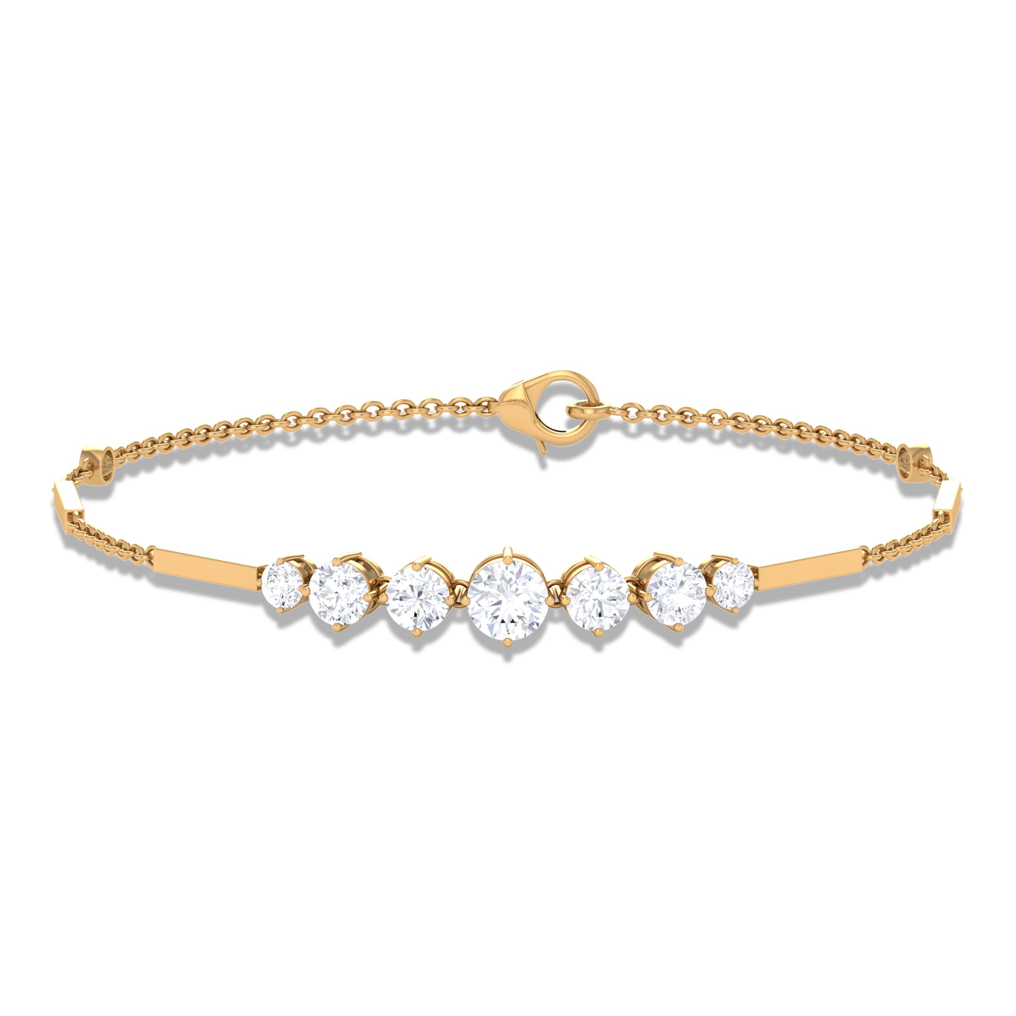 Graduated Style Round Moissanite Link Chain Bracelet for Women