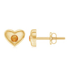 Enhance your style with the charming elegance of these Heart Stud Earrings. These heart earrings showcase a captivating Round Orange Sapphire gemstone, delicately placed as a solitaire within a gypsy setting. The heart shaped design introduces a romantic and playful element, making them the ideal accessory for any occasion. Whether youre dressing up for a special event or adding a touch of whimsy to your everyday look, these sapphire earrings offer the perfect blend of sophistication and charm.