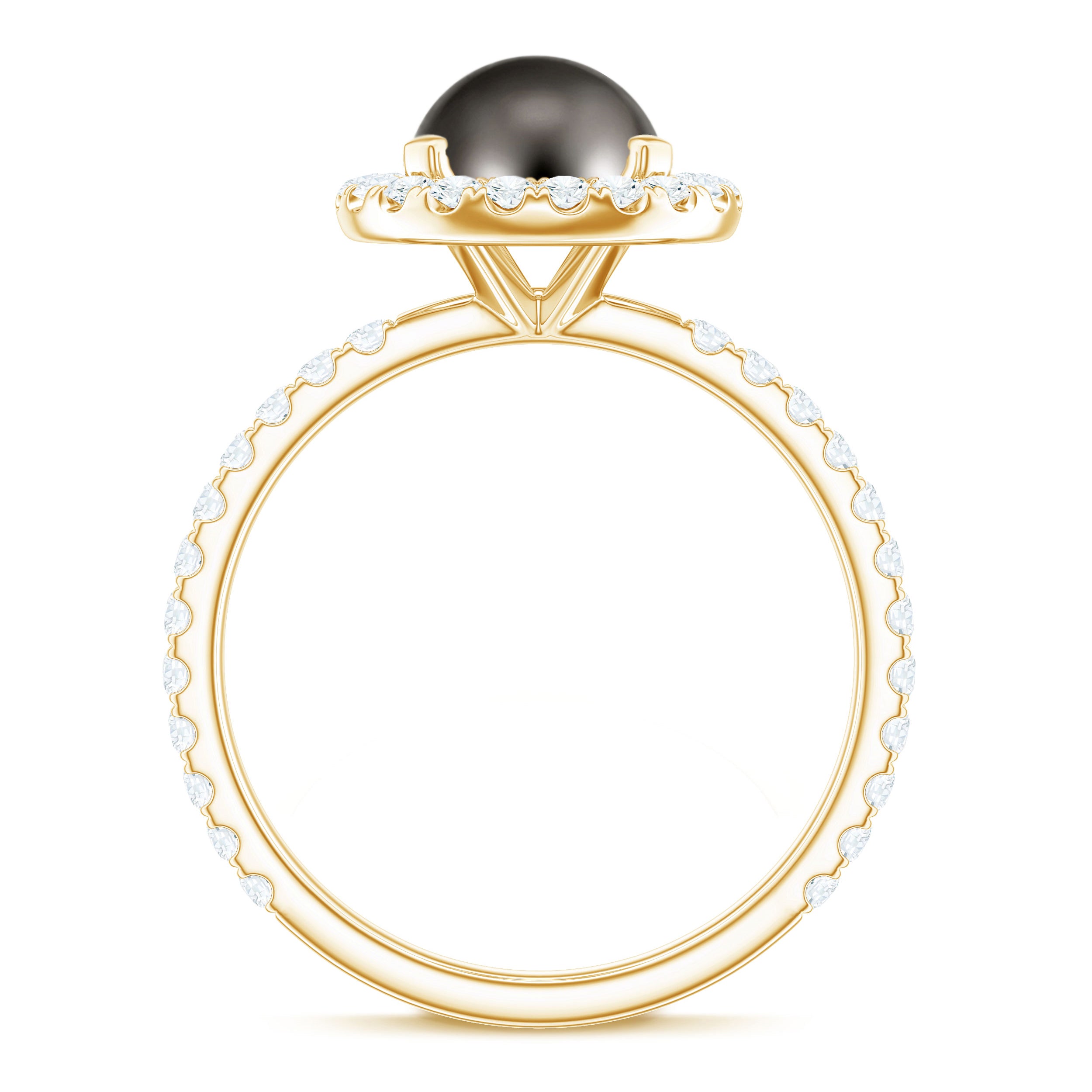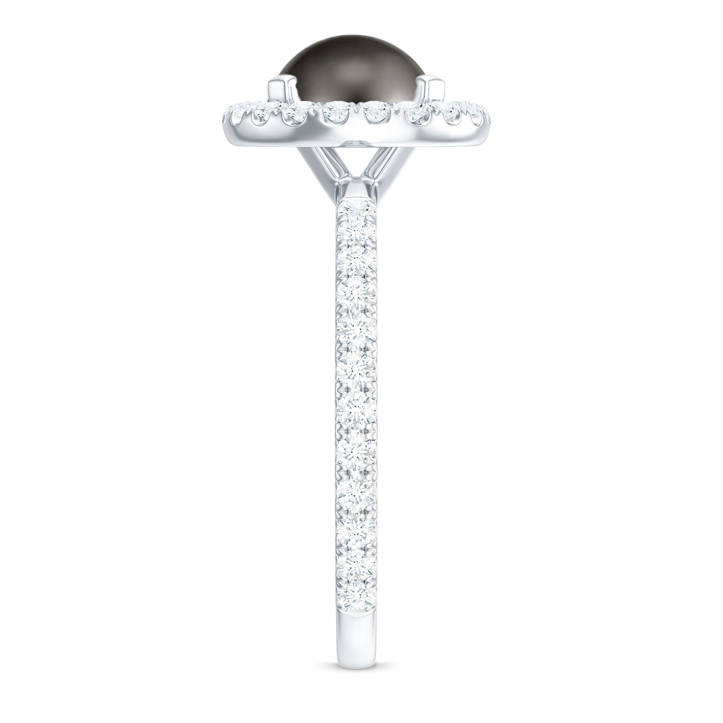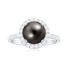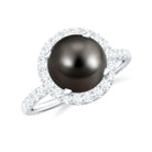 Halo Engagement Ring with Tahitian Pearl and Diamond