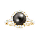 Unique Ring is the statement piece is embellished with Round Shape Tahitian Pearl as solitaire encircled with small Round Shape Diamond and more Diamond are set as a Side Stone. This Engagement Ring is available in 10K, and 18K Solid Gold.