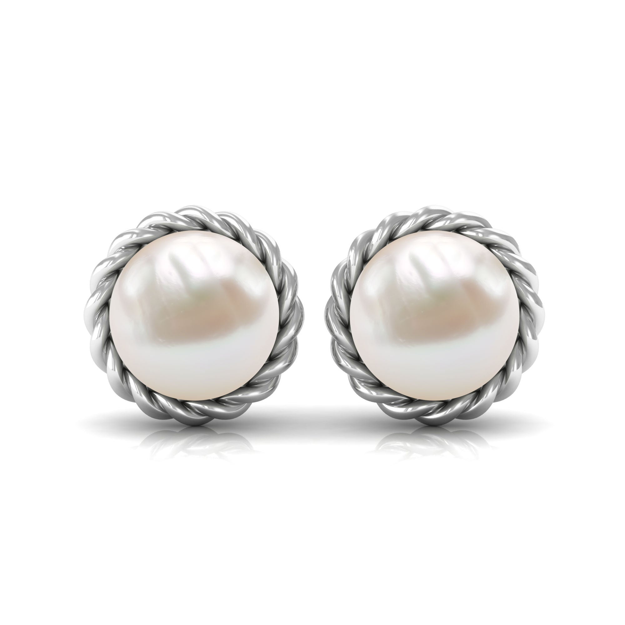Handpicked 10MM Freshwater Pearl Stud Earrings with Rope Frame