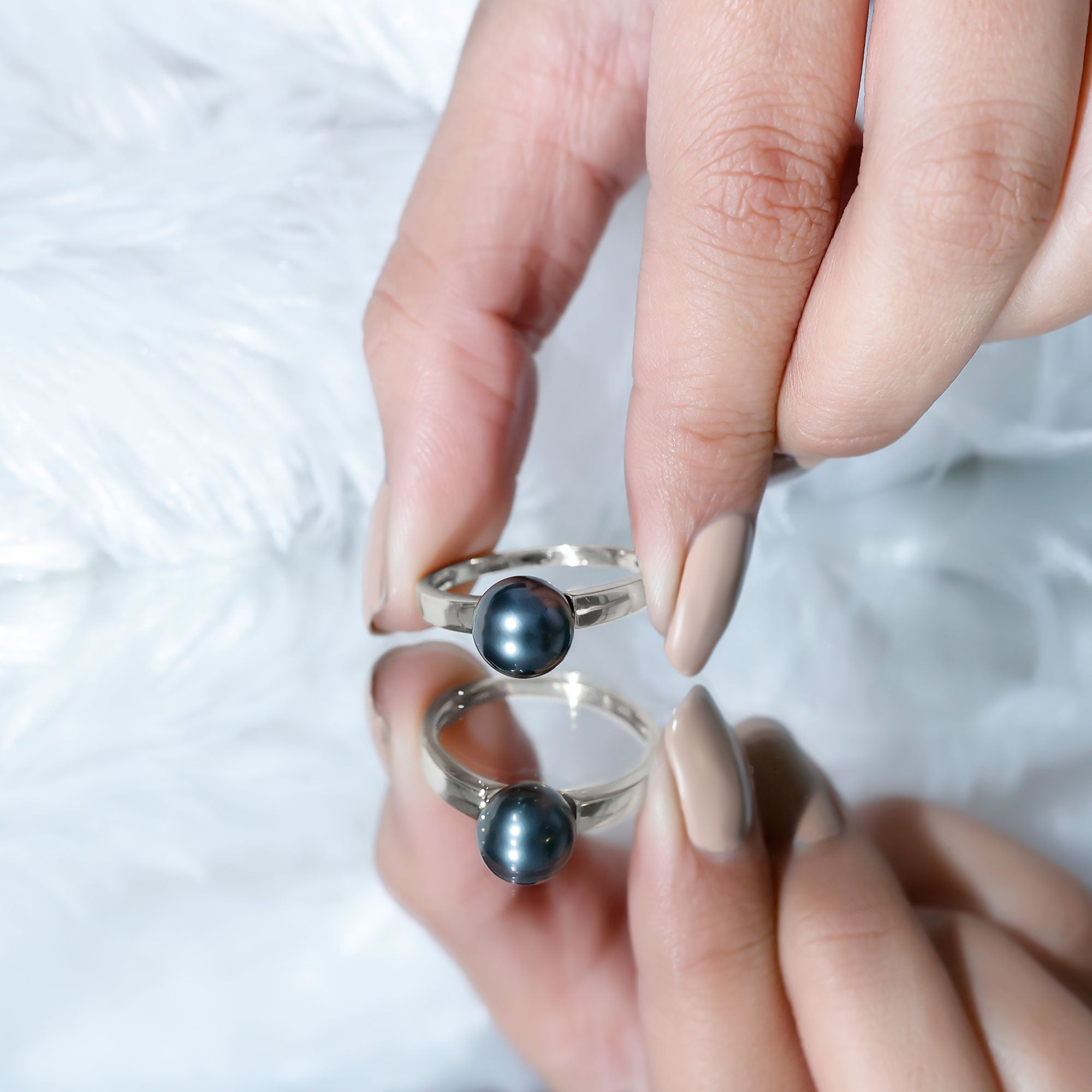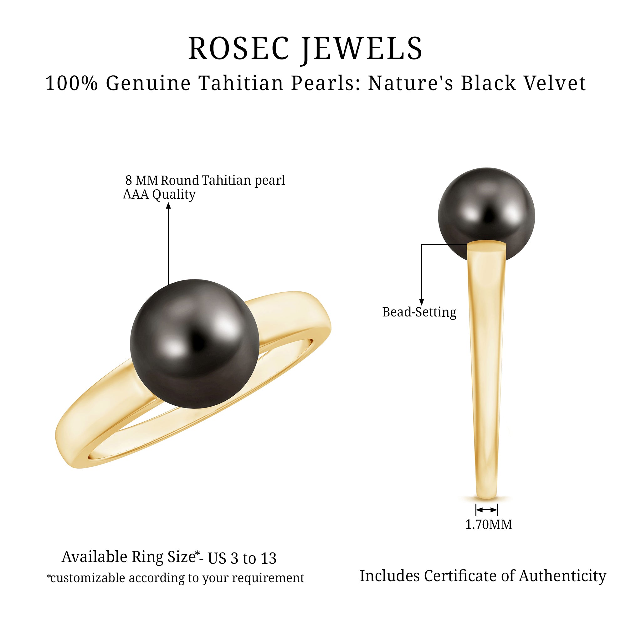 This Tahitian Pearl Engagement Ring is a captivating blend of elegance, rarity, and timeless beauty. At its center rests an exquisite 8 MM round shaped Tahitian pearl (AAA quality), celebrated for its naturally deep black luster. As June’s birthstone, the pearl symbolizes purity, intuition, and new beginnings, making it a meaningful choice for an engagement ring that speaks straight to the heart. The pearl is secured in bead setting, allowing its radiant surface to take center stage while ensuring a smooth and seamless profile. The simple metal band, crafted to complement the pearl’s rich color and adds a sophisticated balance. Designed for those who appreciate understated luxury, this Pearl Solitaire Ring offers a distinctive alternative to traditional engagement rings. Perfect as a statement of love, commitment, or personal expression, this Black Pearl Engagement Ring embodies the beauty of simplicity and the allure of one of nature’s rarest gems.