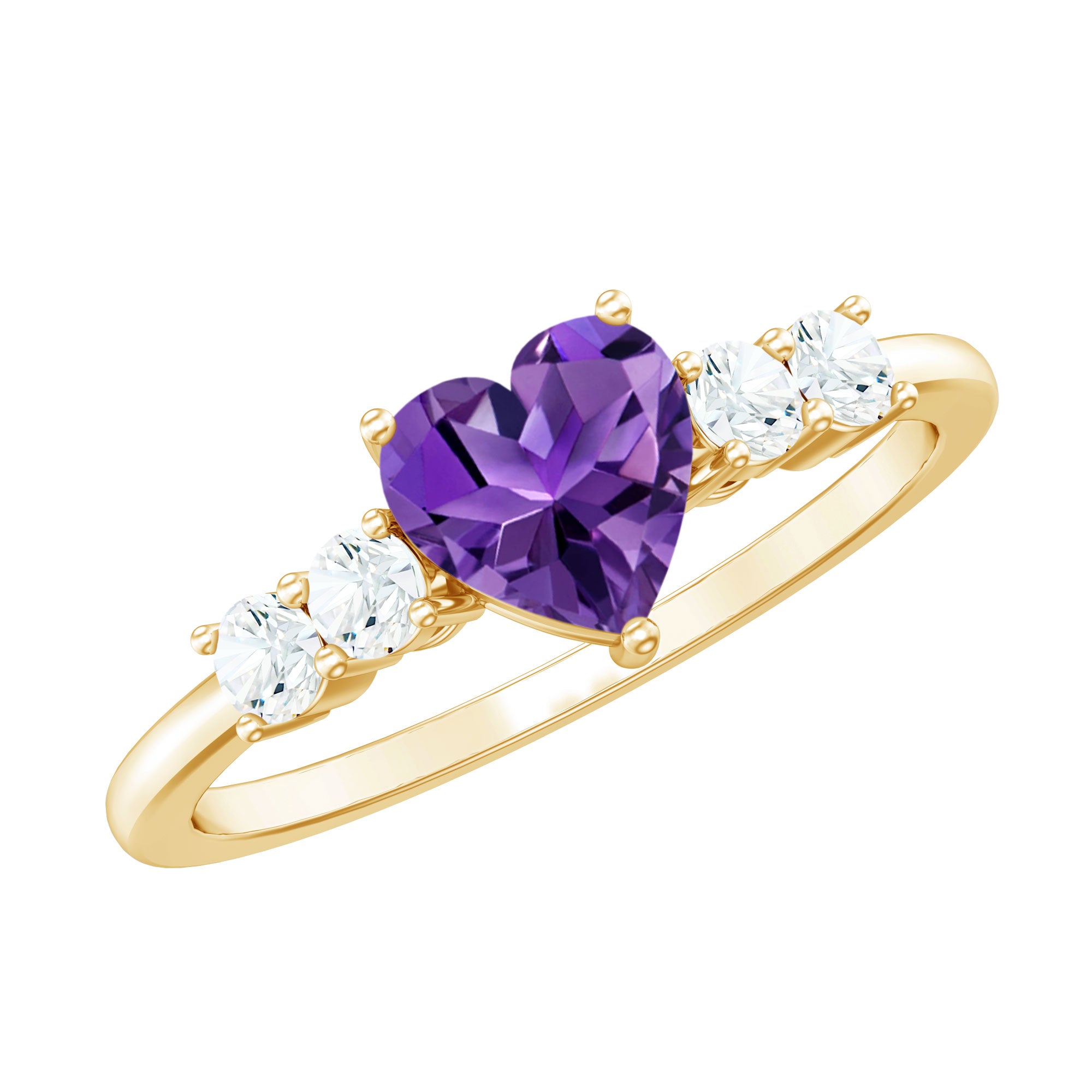Heart Amethyst Solitaire Promise Ring with Moissanite