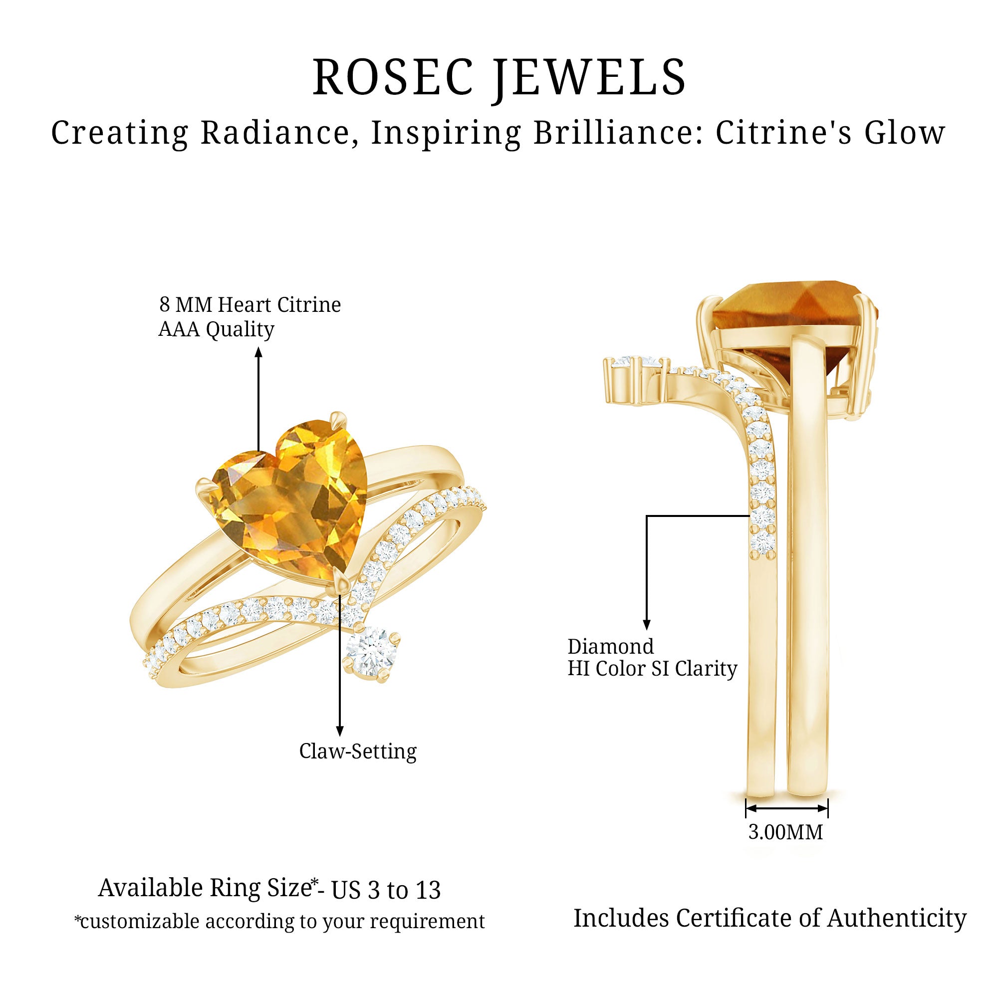 Fall in love with our heart citrine solitaire ring set, adorned with sparkling Diamond stones. Discover timeless beauty today!