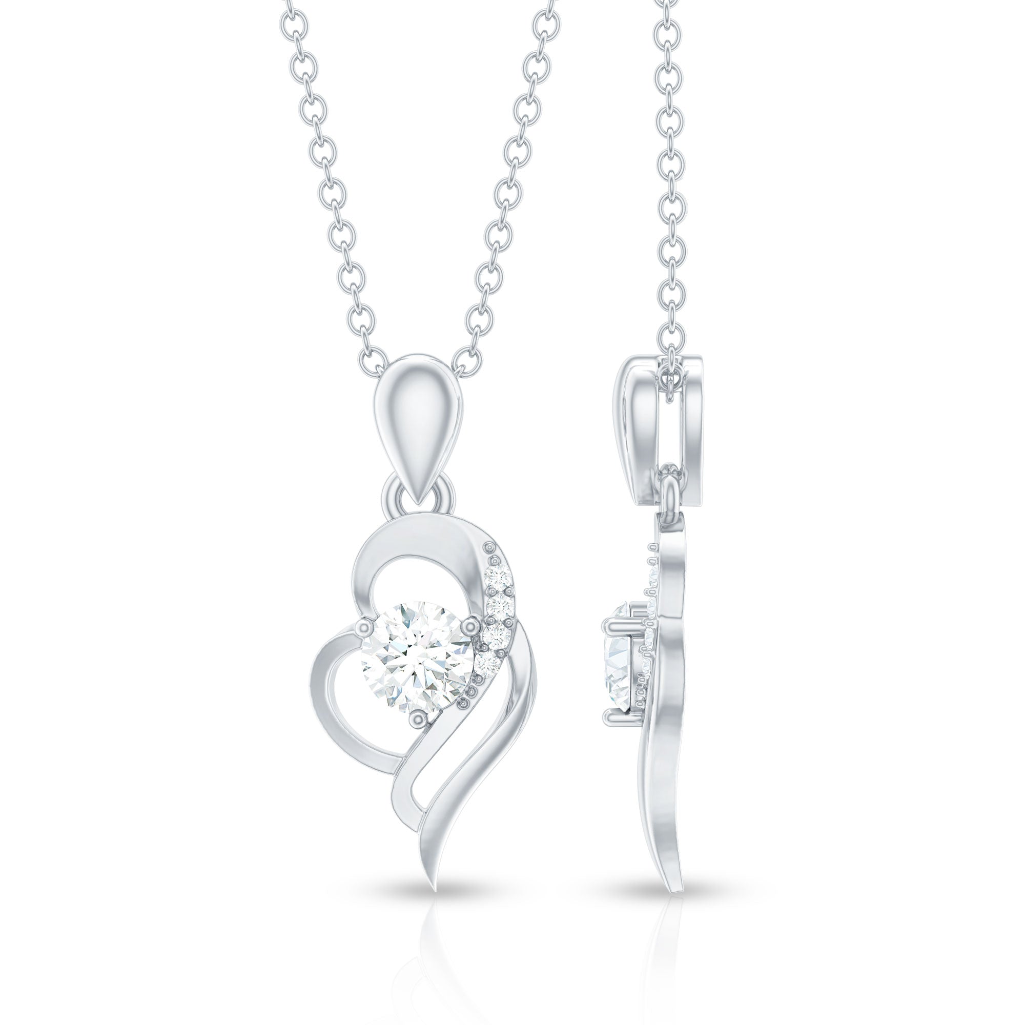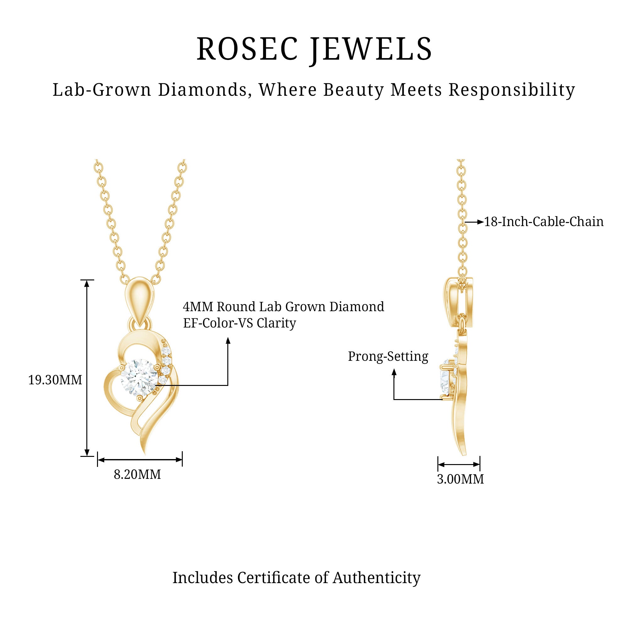Give her the heart she deserves in the form of this Heart Shaped Pendant, embellished with a 4 mm Round Shape Diamond set in prong setting in the center of an open heart while the dainty Ef-Vs quality diamonds sparkle over the heart shape, creating a timeless symbol of affection. Rosec Jewels commitment to sustainability and craftsmanship shines through, reflecting the ethos of our brand. Elevate your style and celebrate love with this radiant Diamond Pendant Necklace (Synthetic), a testament to both your passion and your values. It comes packaged in a premium storage box, making it ideal for gifting on special occasions like anniversaries, birthdays, Mothers Day, or Valentines Day. A gift as unique and radiant as your loved one.