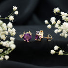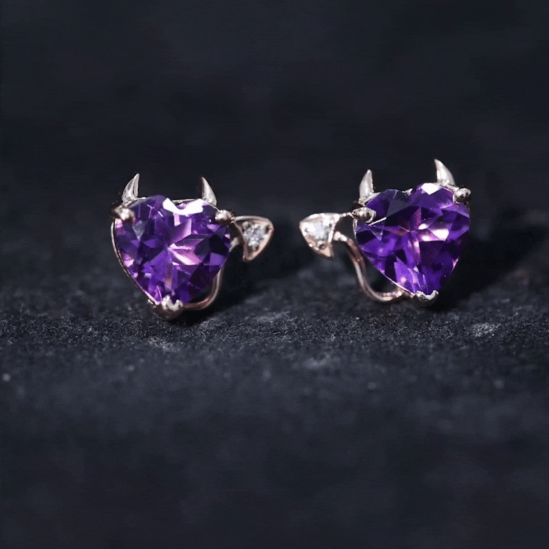 Designed with love for Women in Gold as Devil Heart Stud Earrings, they feature Heart Shape Amethyst embellished in Prong Setting with Round Shape Diamond gemstone embellished in Prong Setting for you to look happy.