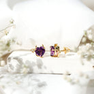 Heart Shape Amethyst and Diamond Gothic Stud Earring