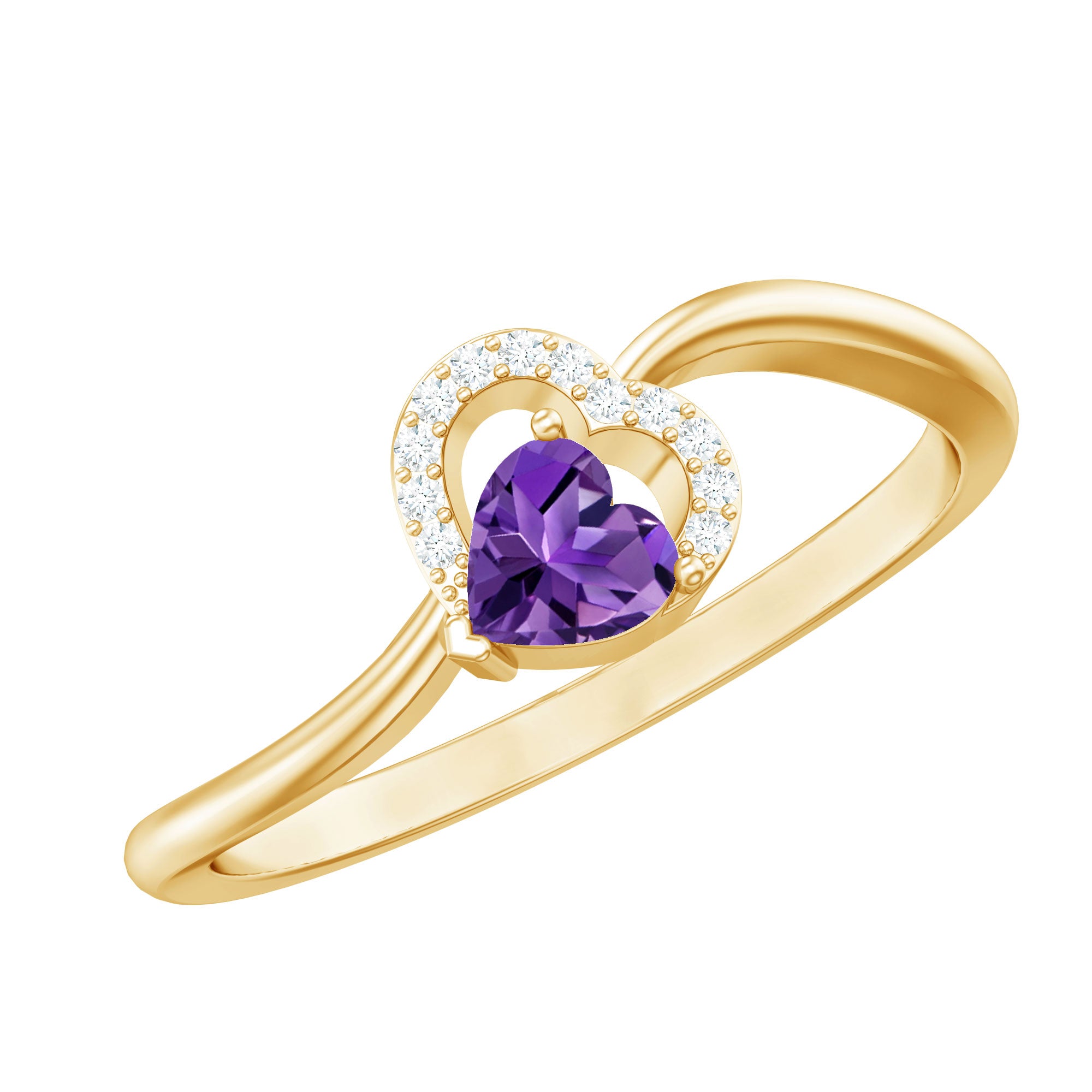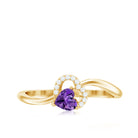 Heart Shape Amethyst and Diamond Twisted Promise Ring