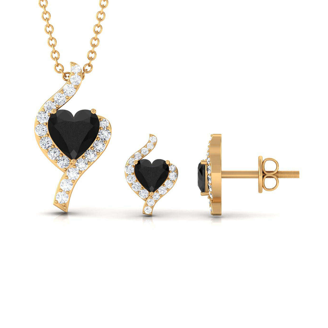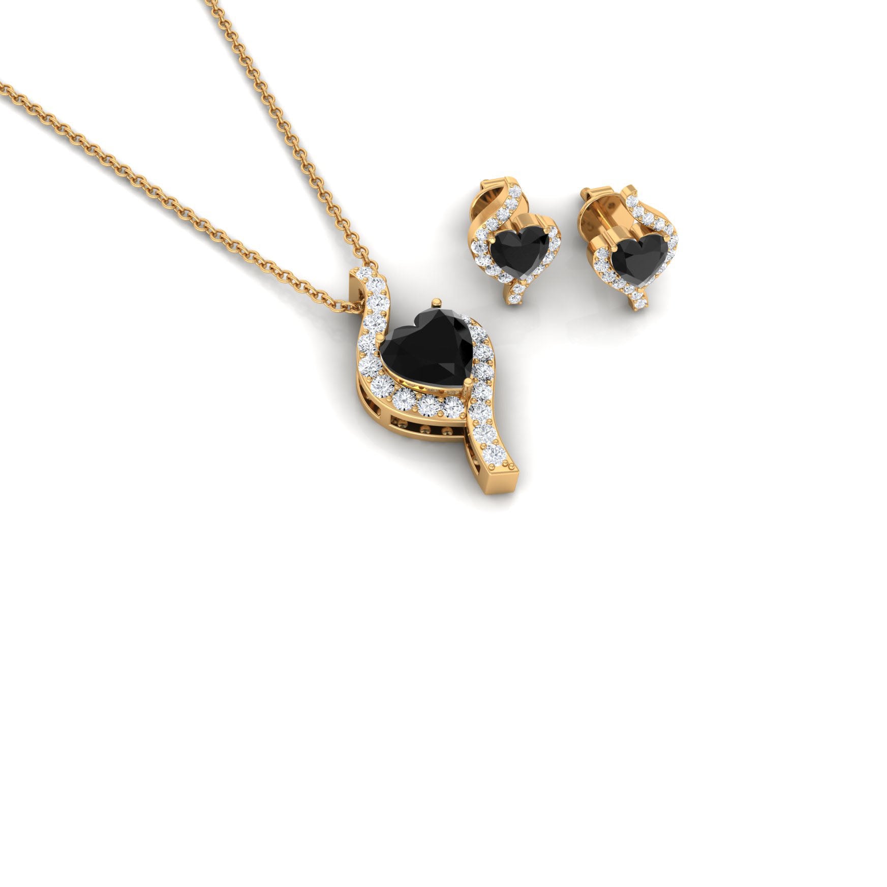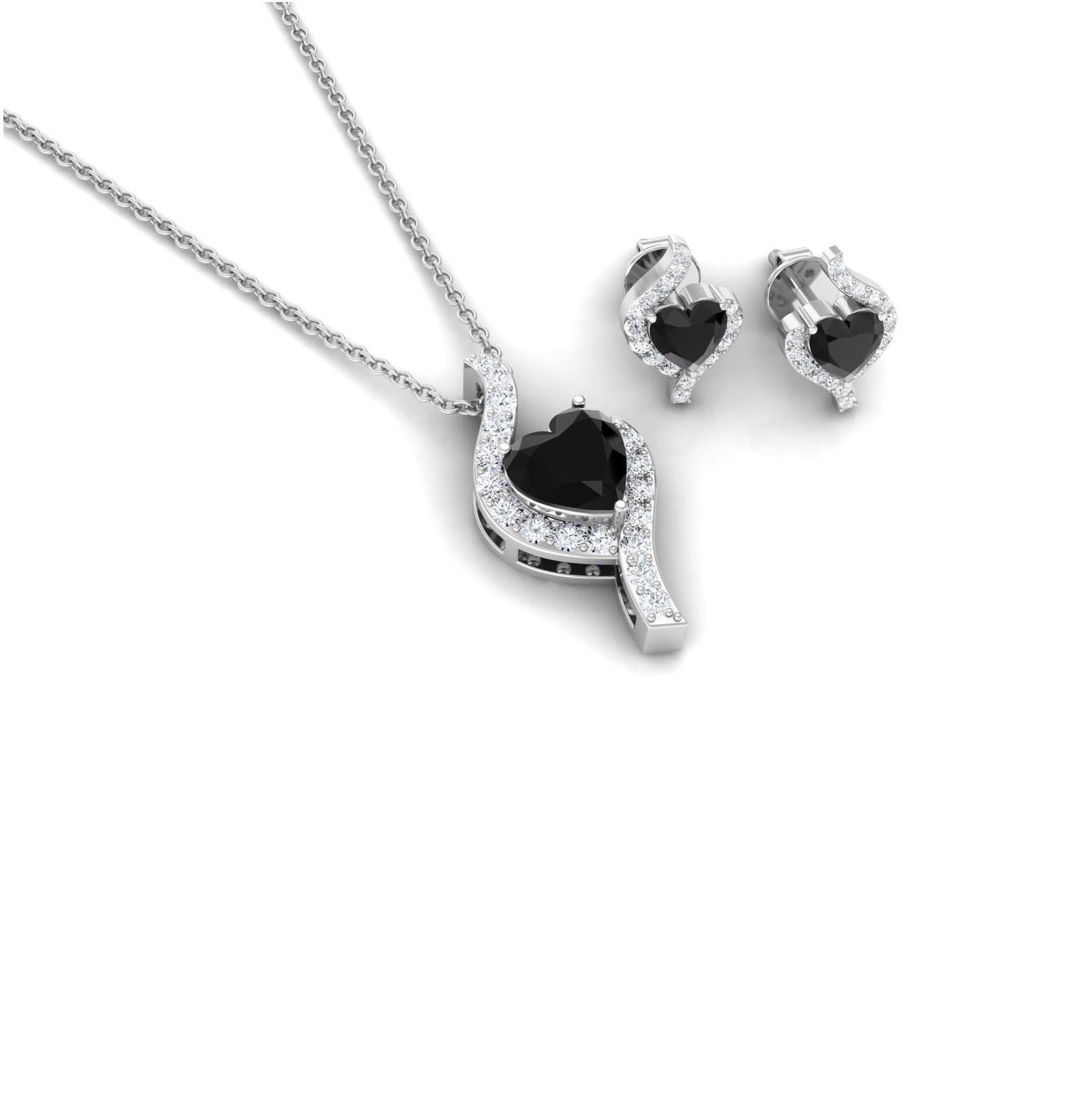 Heart Shape Black Onyx and Diamond Jewelry Set