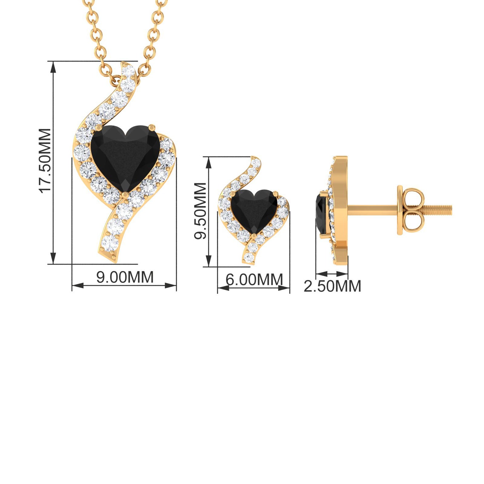 This exquisite jewelry set is the perfect way to show your love to your partner. This unique pendant features a 6x6 MM heart shape black onyx surrounded by sparkling Diamond. The earring also features a 4x4 MM heart shape black onyx center stone surrounded by small sparkling Diamond. This jewelry set is perfect for any occasion, from a romantic dinner date to a special event.