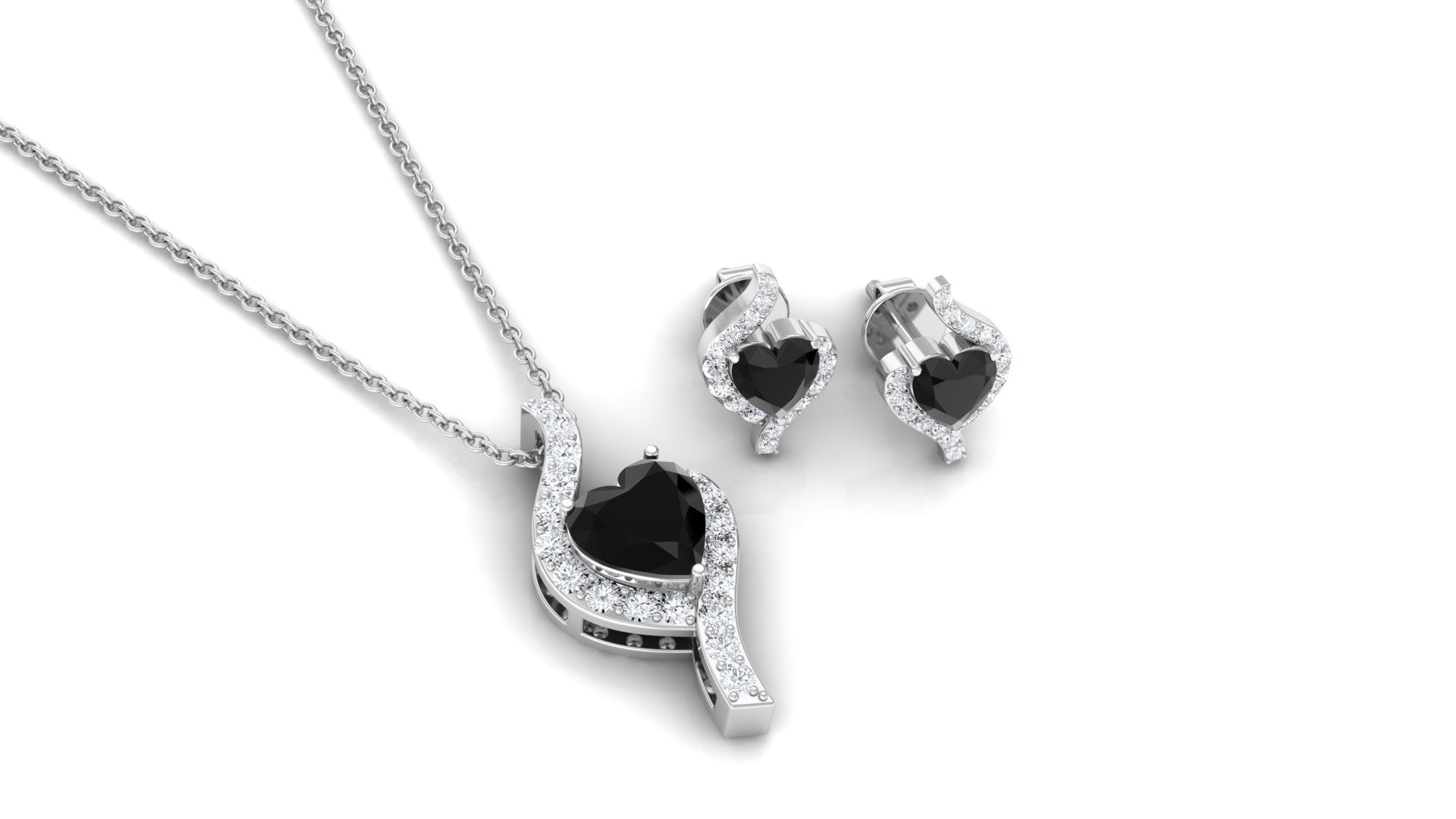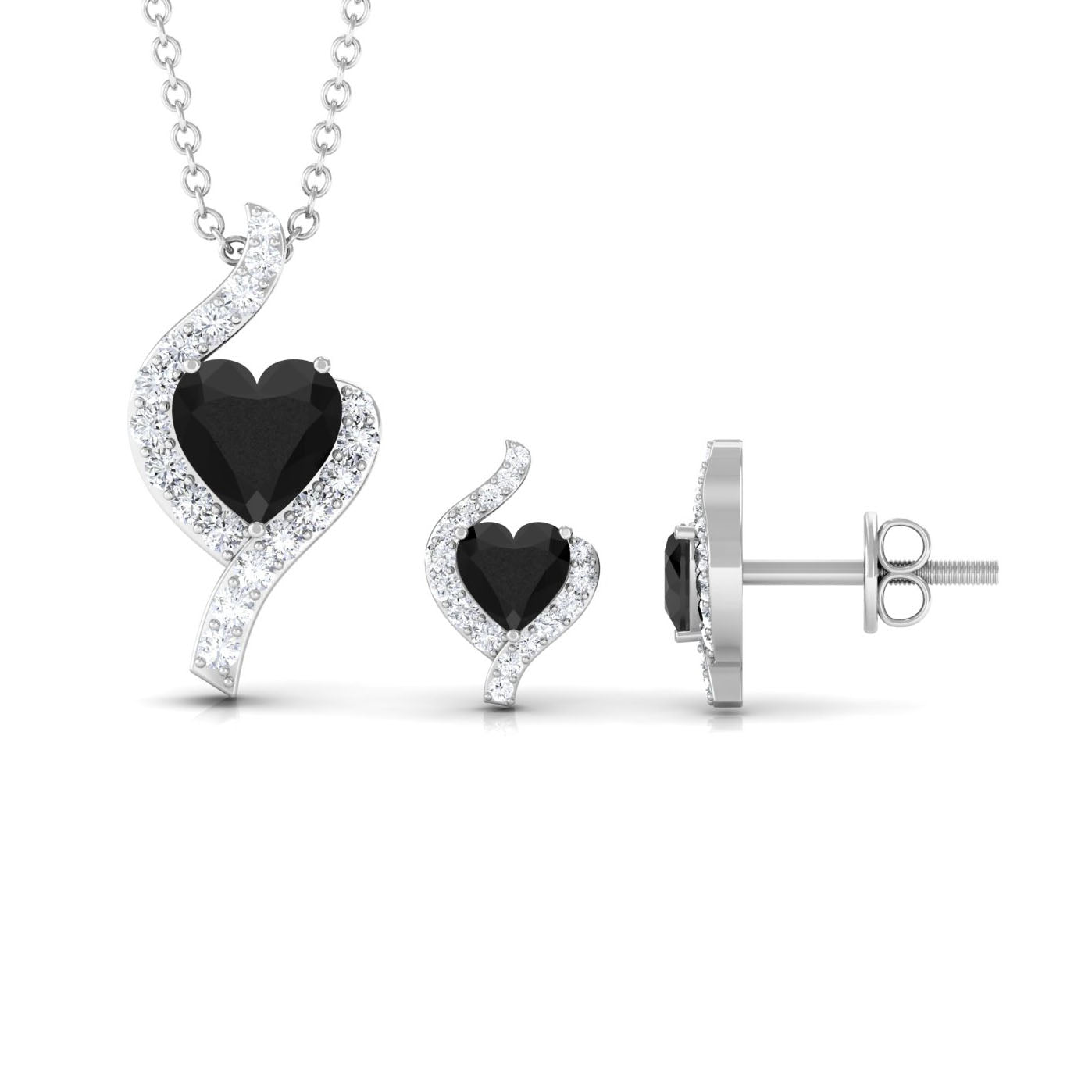 Heart Shape Black Onyx and Diamond Jewelry Set