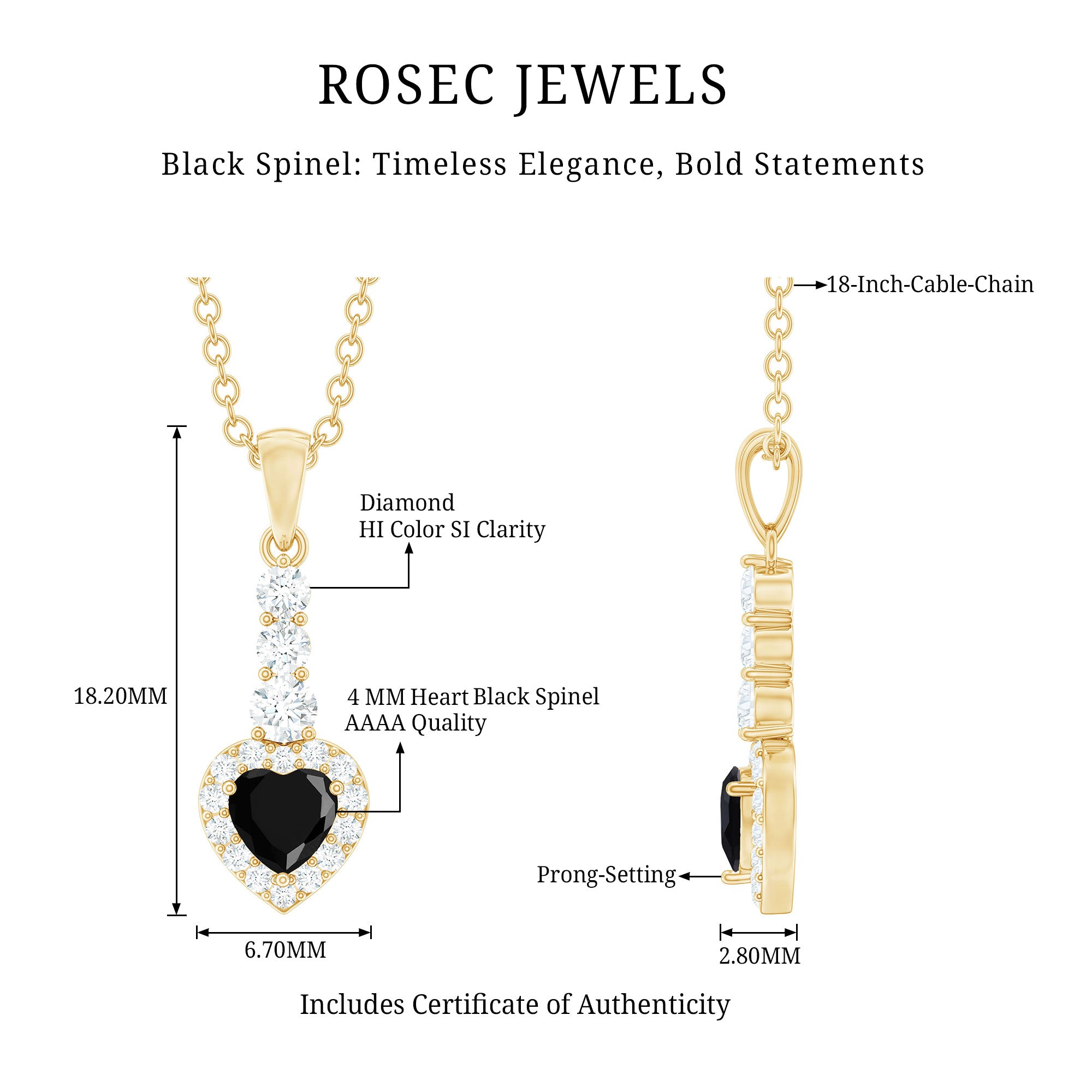 This stunning drop pendant features a brilliant heart shape Black Spinel gemstone surrounded by a Diamond halo, elegantly suspended from a delicate Diamond-studded bail. The vibrant hue of the Black Spinel contrasts beautifully with the sparkling Diamond stones, creating a piece that exudes sophistication and charm. Perfect for any occasion, this Black Spinel heart pendant is sure to become a cherished addition to any jewelry collection.