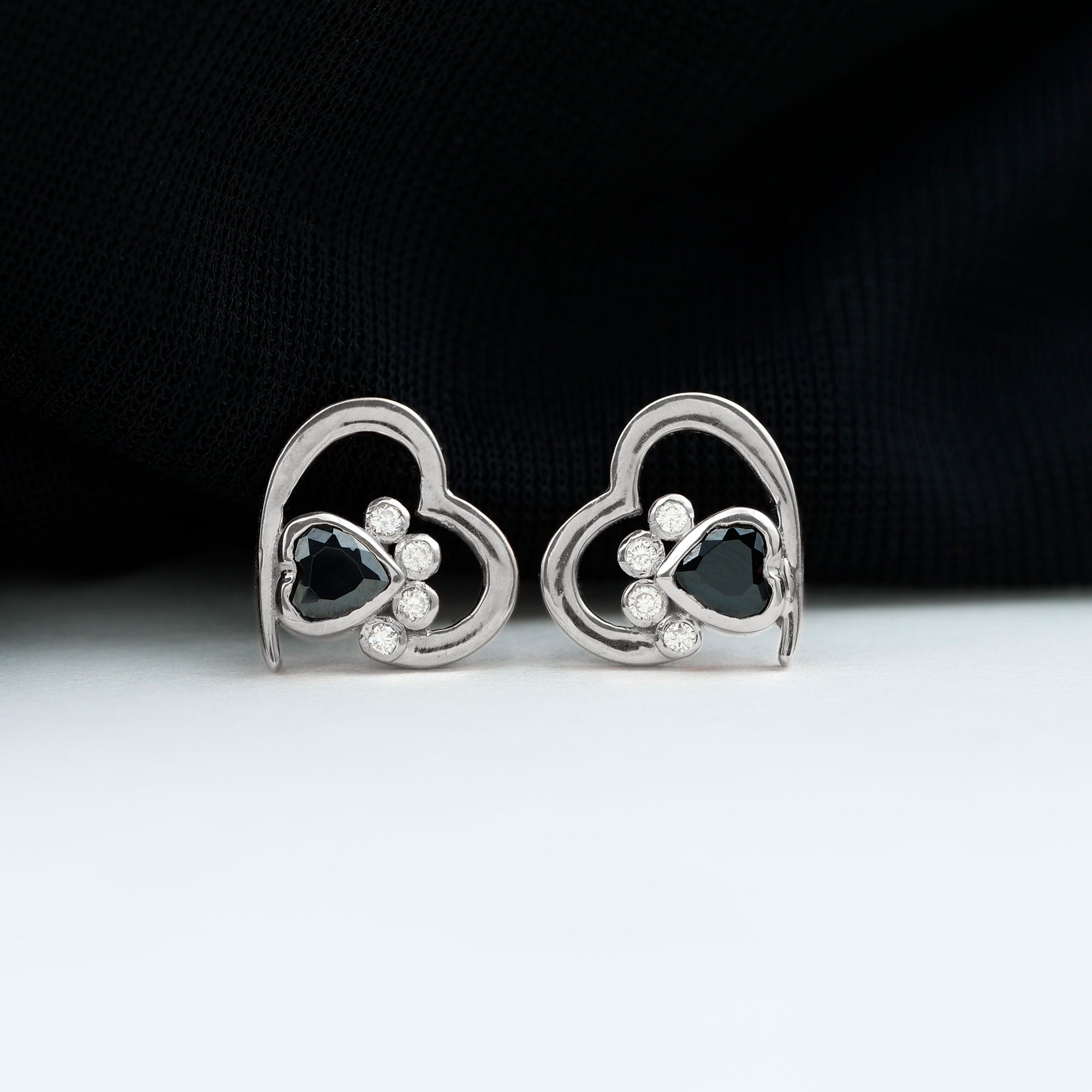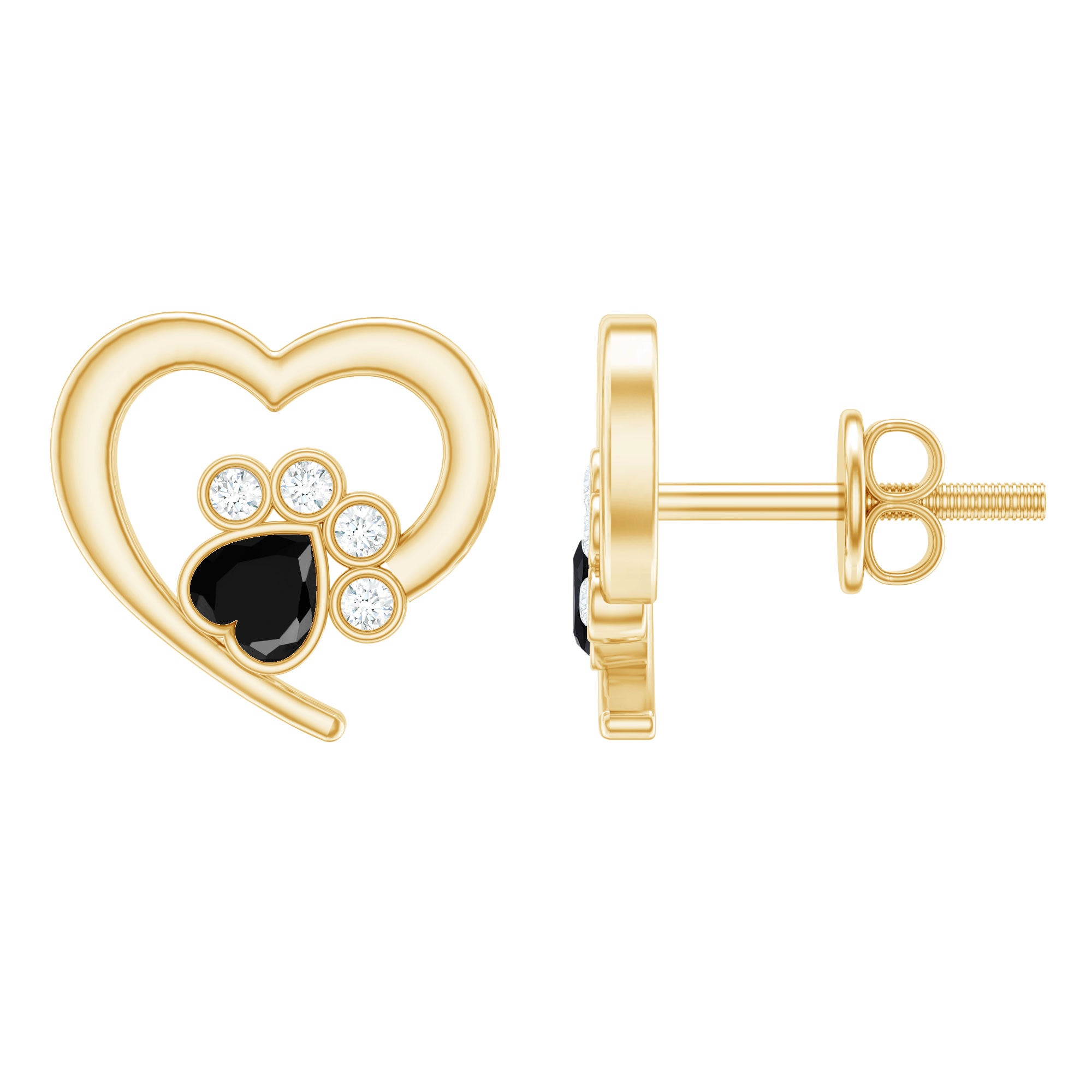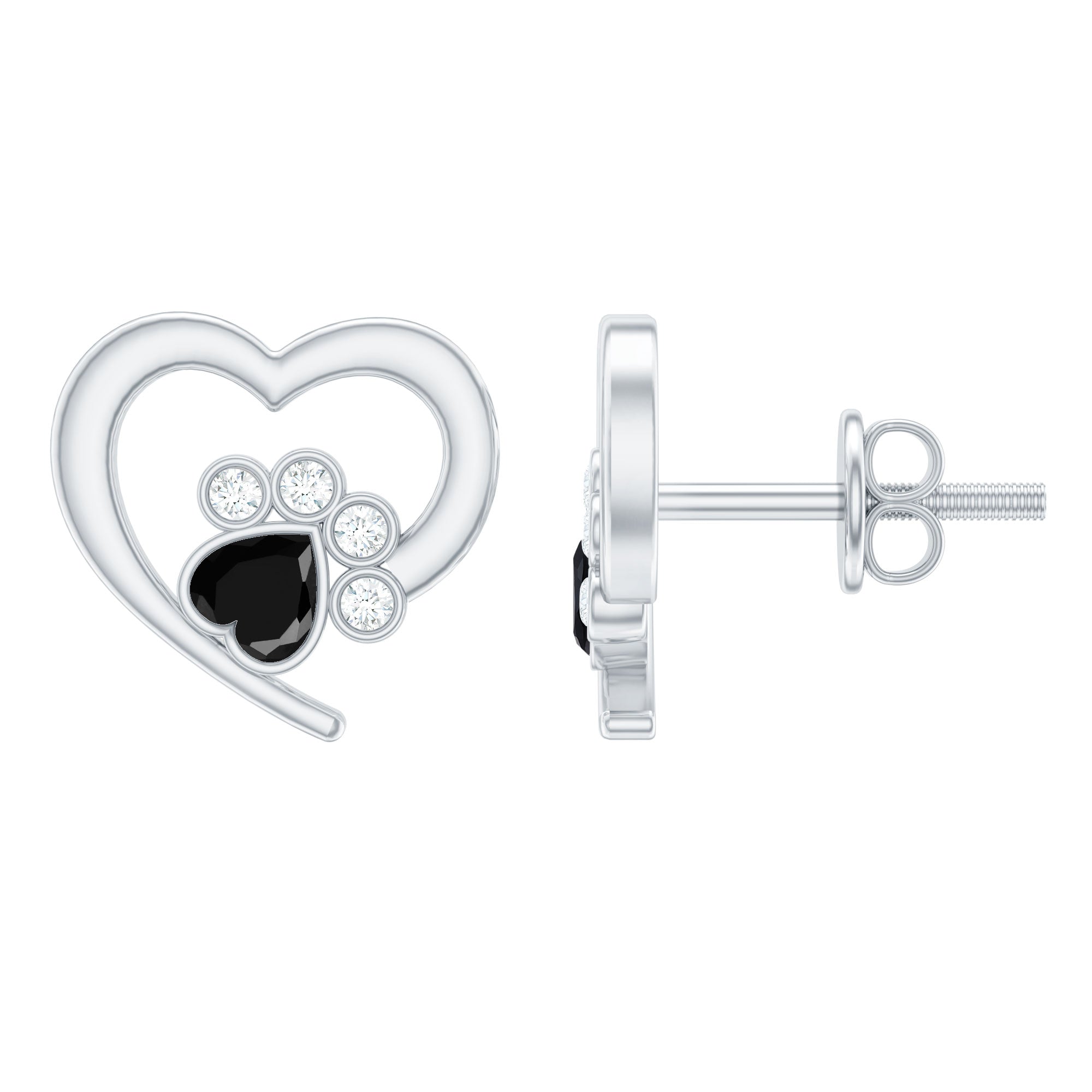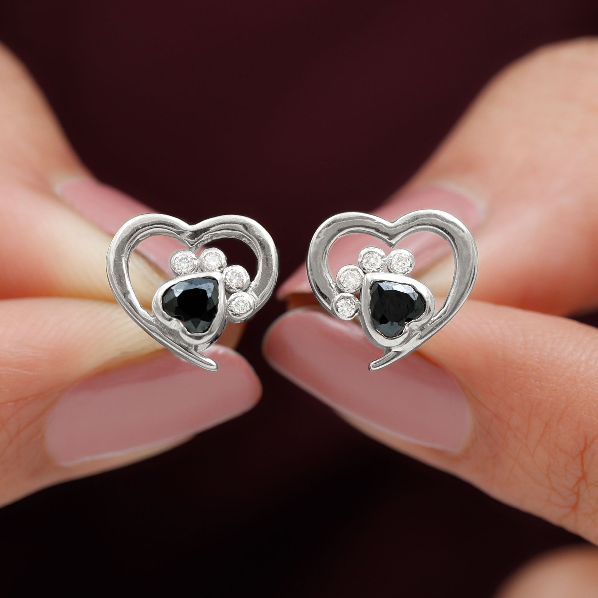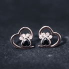 Heart Shape Black Spinel Paw Stud Earrings with Moissanite