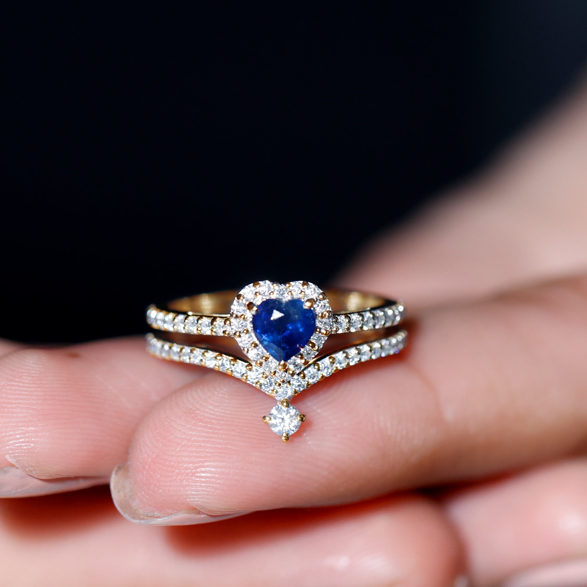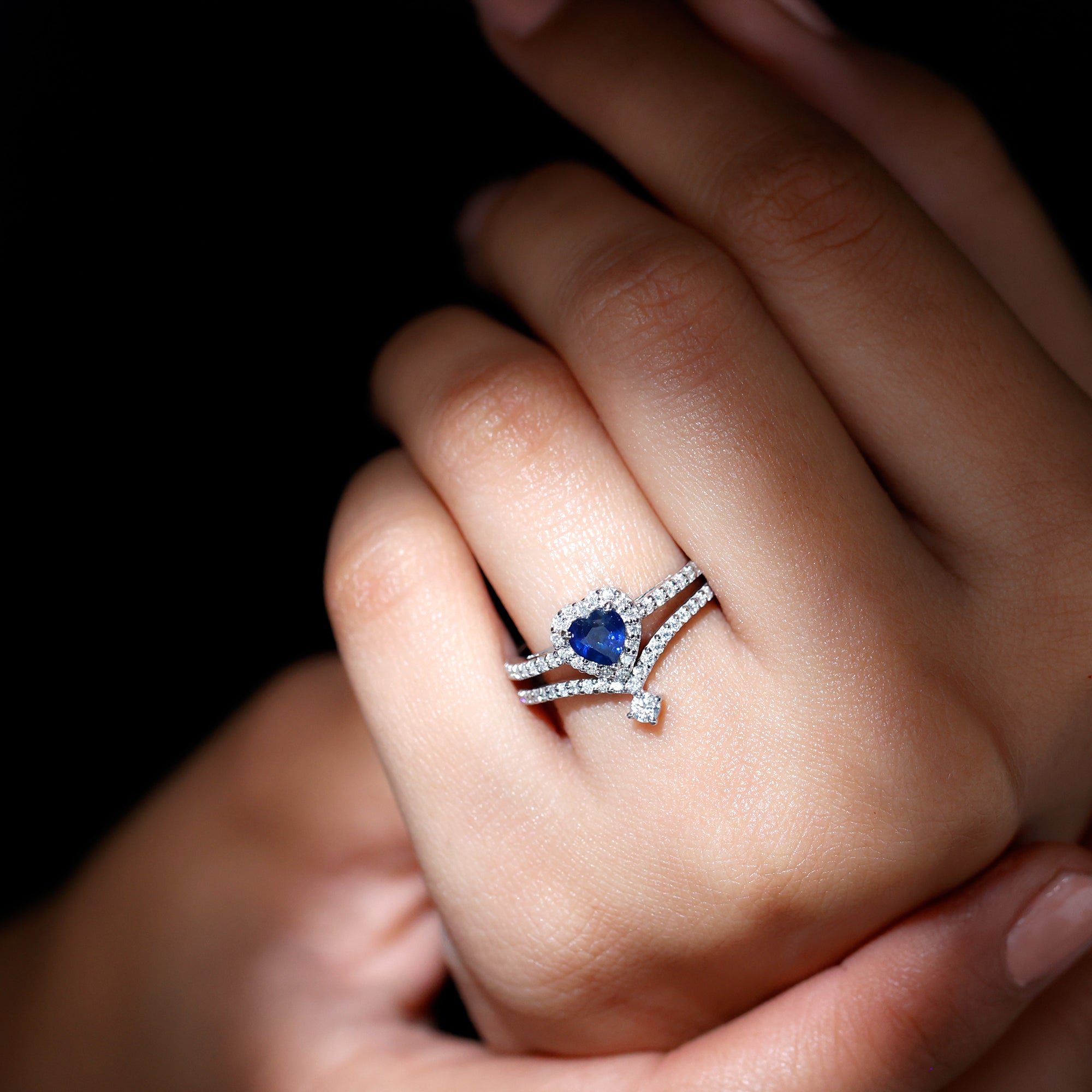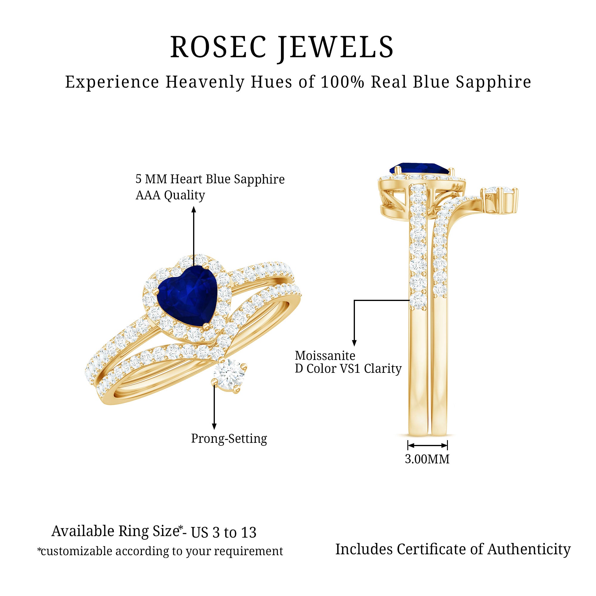 Heart Shape Blue Sapphire Ring Set with Moissanite