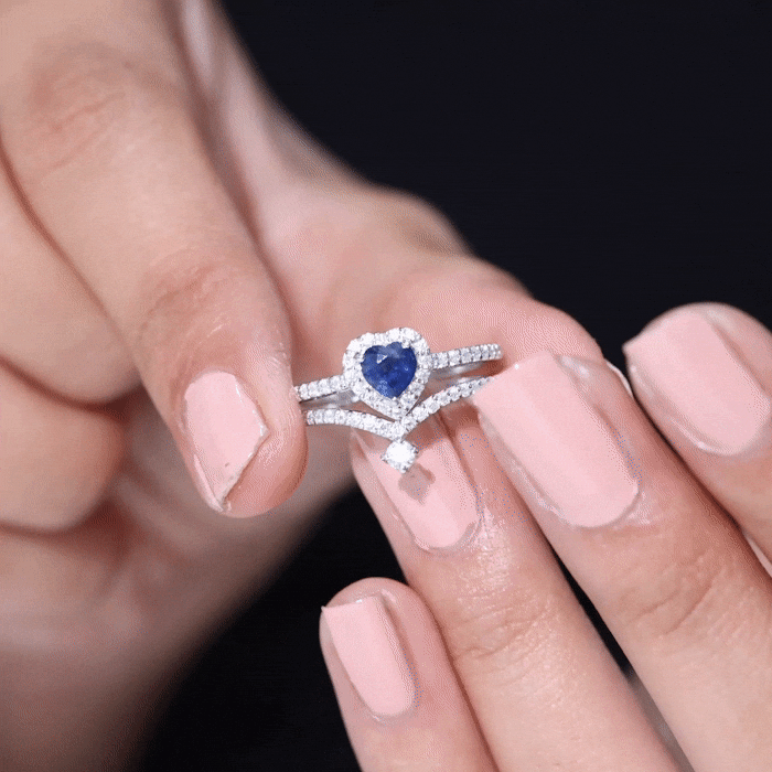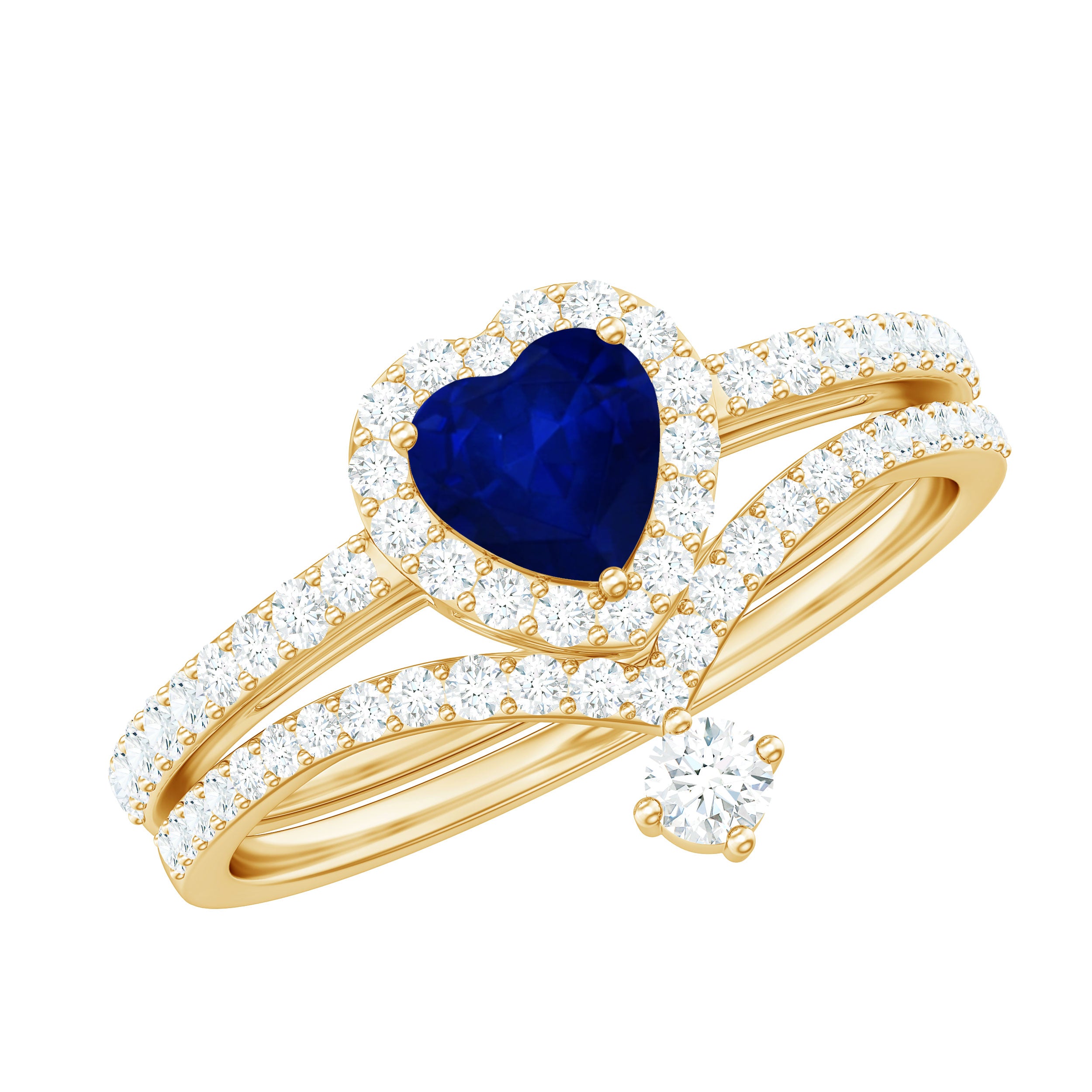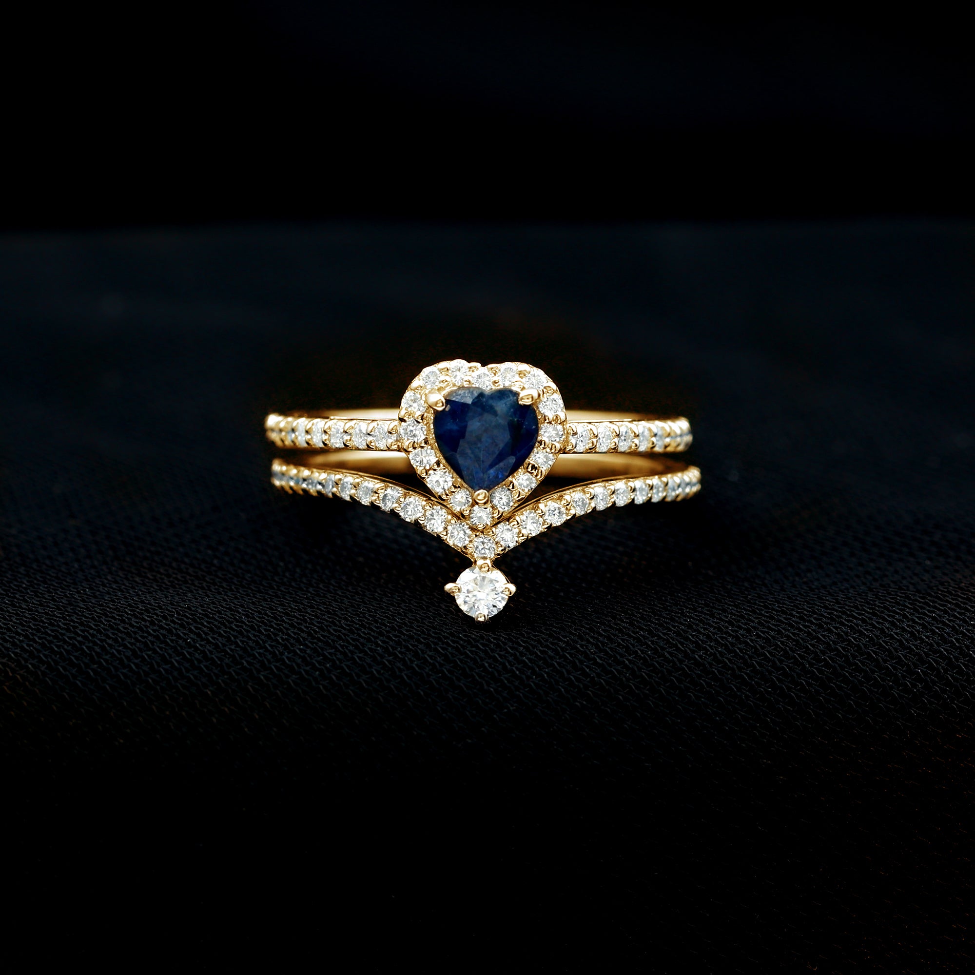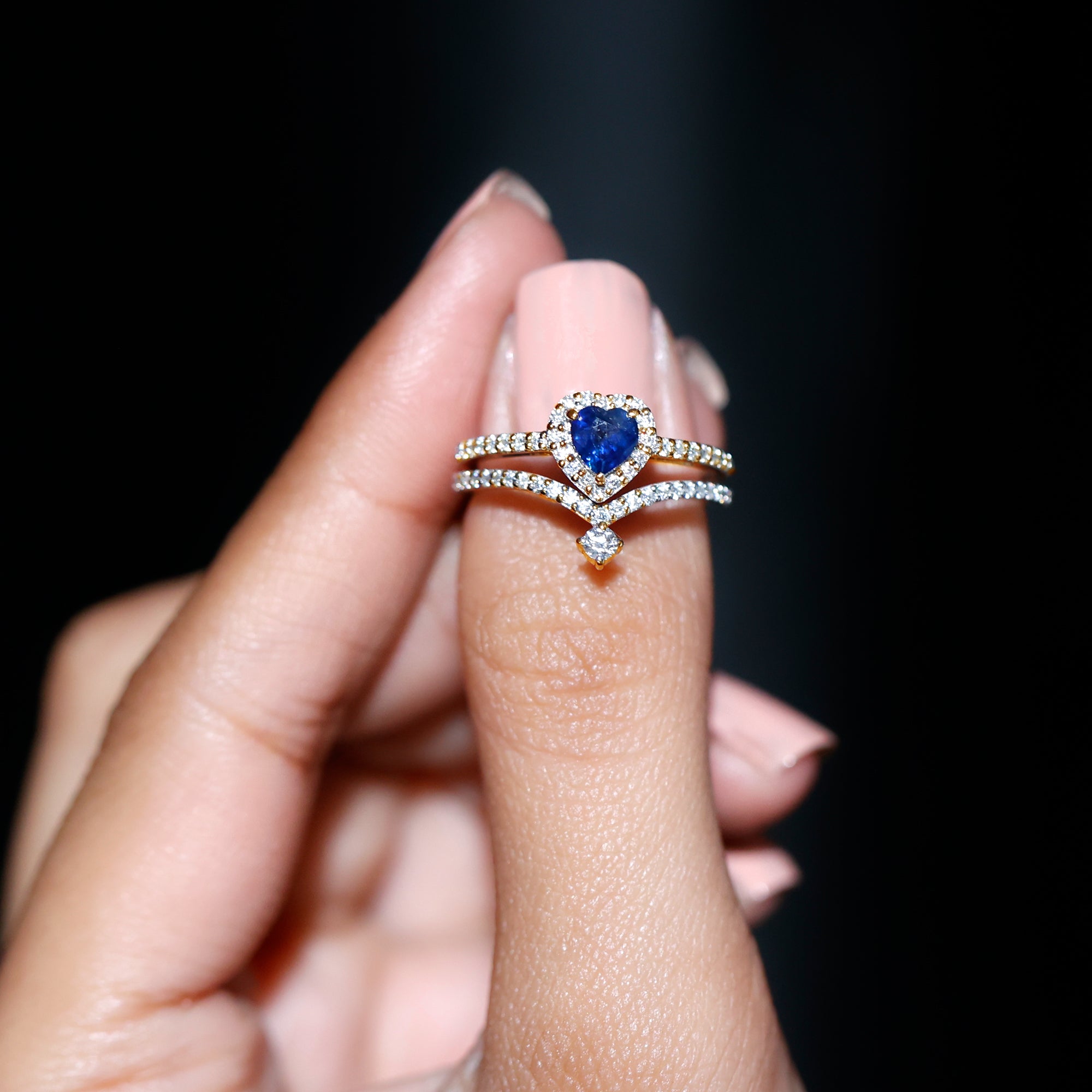 Heart Shape Blue Sapphire Ring Set with Moissanite