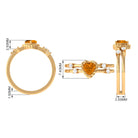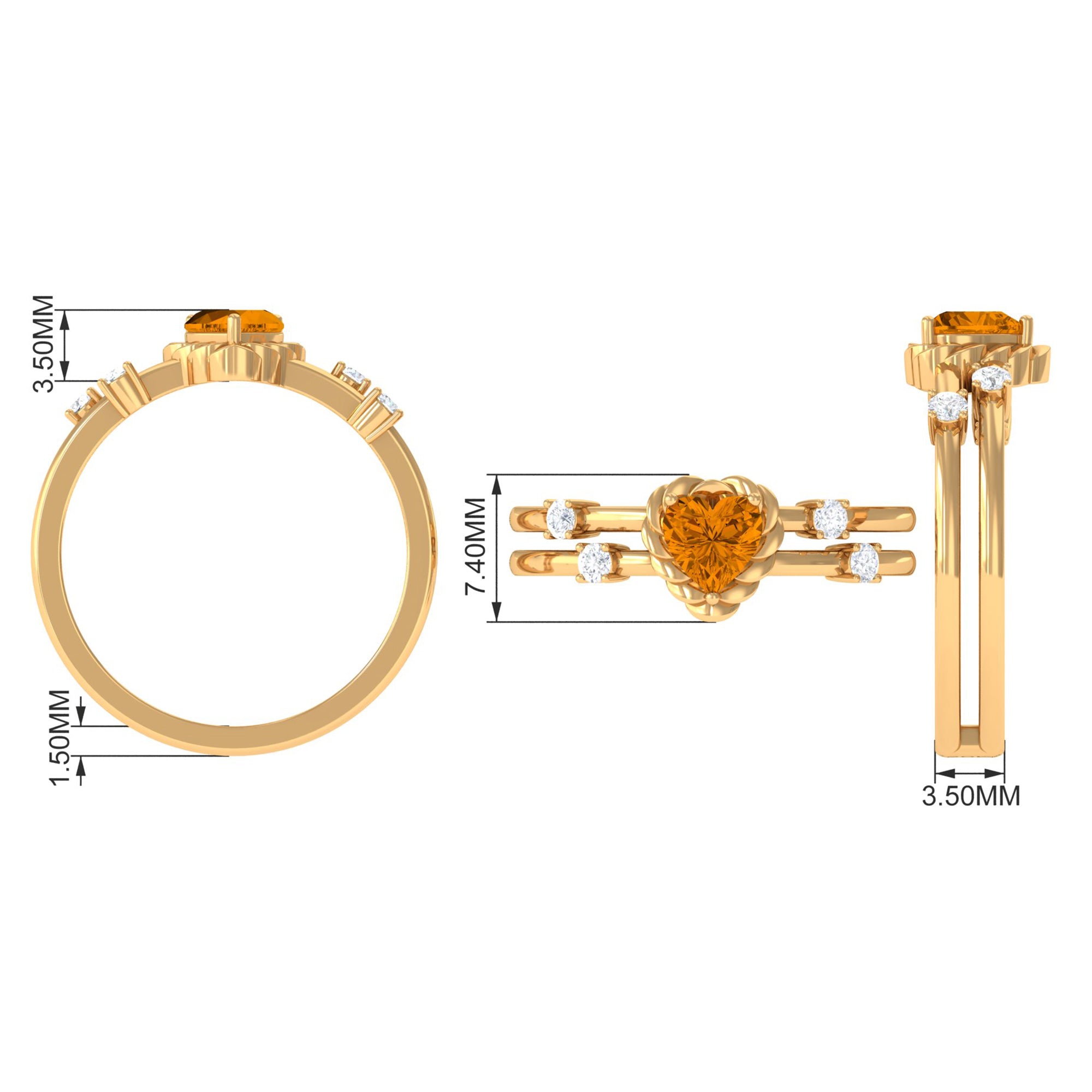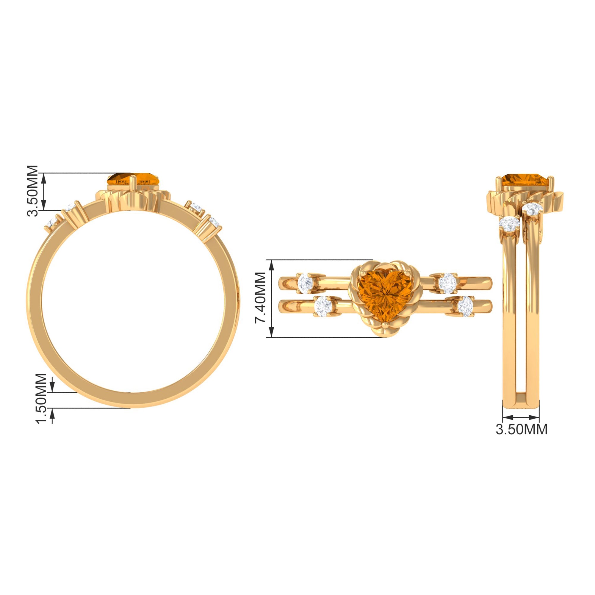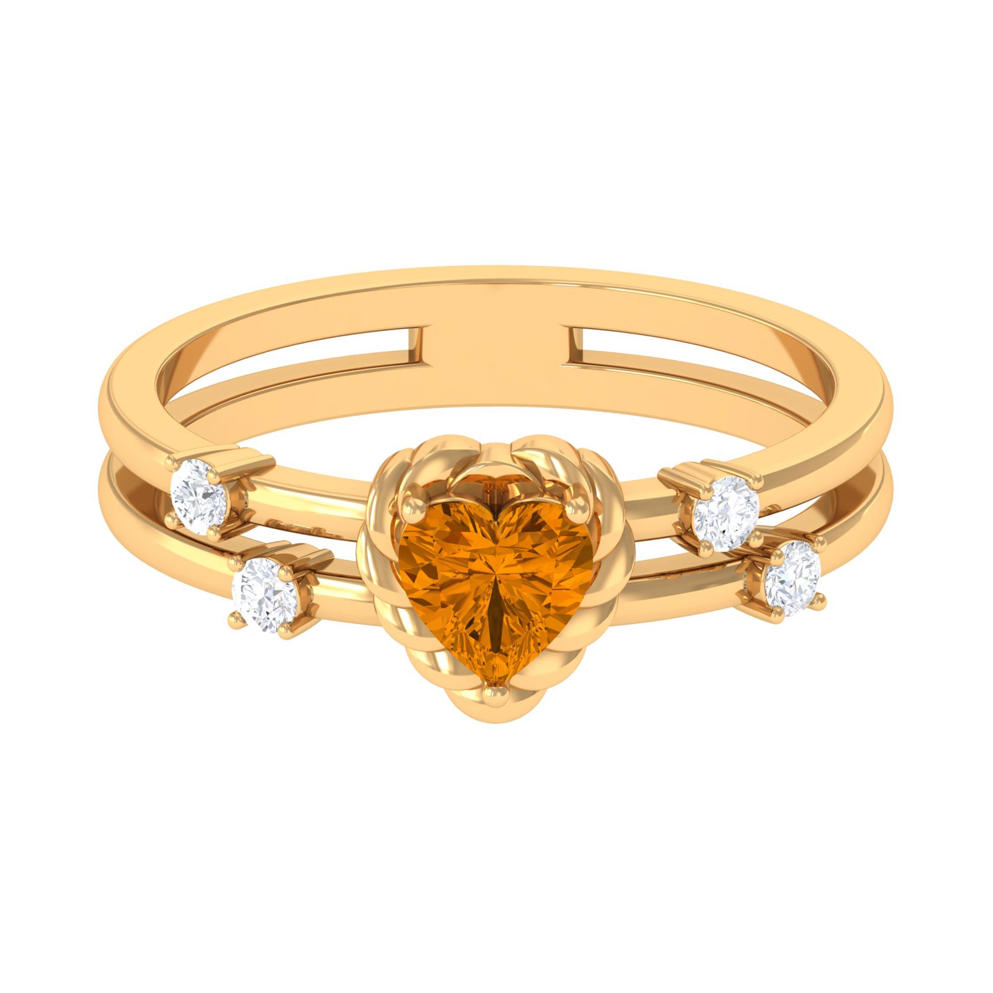 Heart Shape Citrine Solitaire Double Band Ring with Diamond