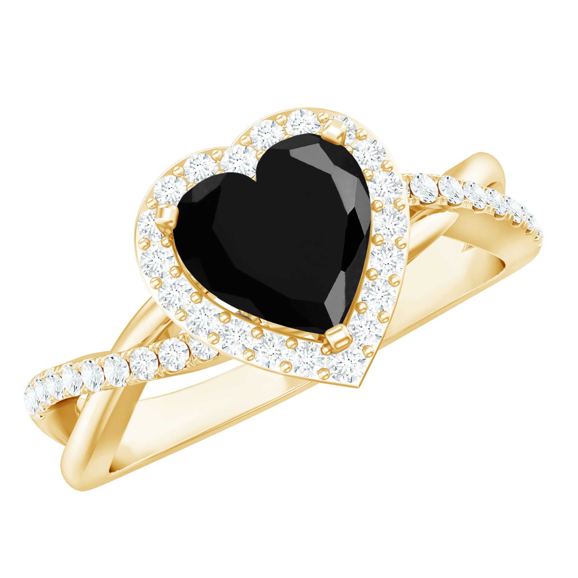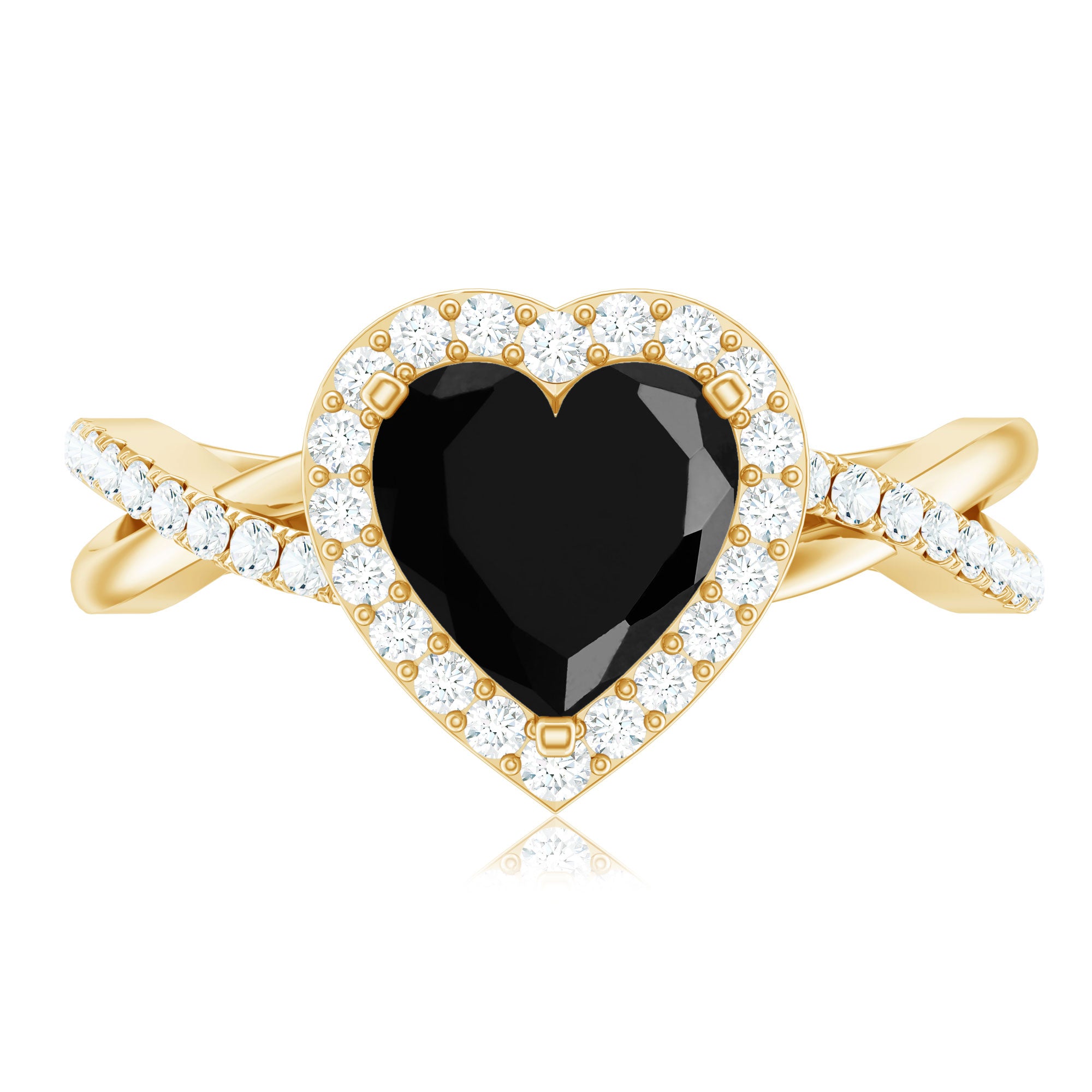 Discover your soul in the form of perfect Heart Engagement Ring. The Created Black Diamond Engagement Ring has intricate design of crossover gold shank, embellished with Round Diamond, creating a romantic look that has timeless beauty. This Heart Shape Created Black Diamond Ring is crafted in gold for a sumptuous appeal.