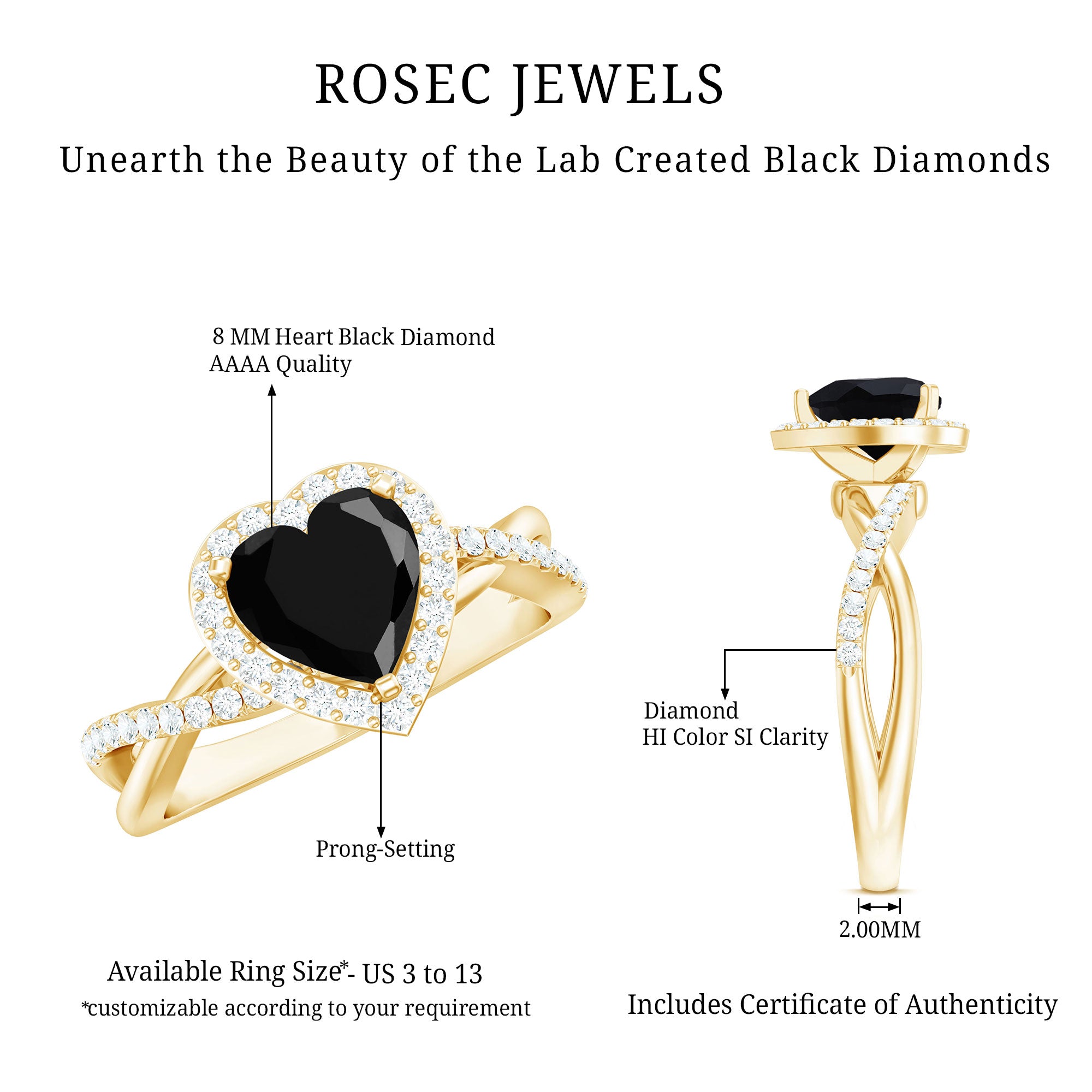 Heart Shape Created Black Diamond Crossover Engagement Ring with Diamond