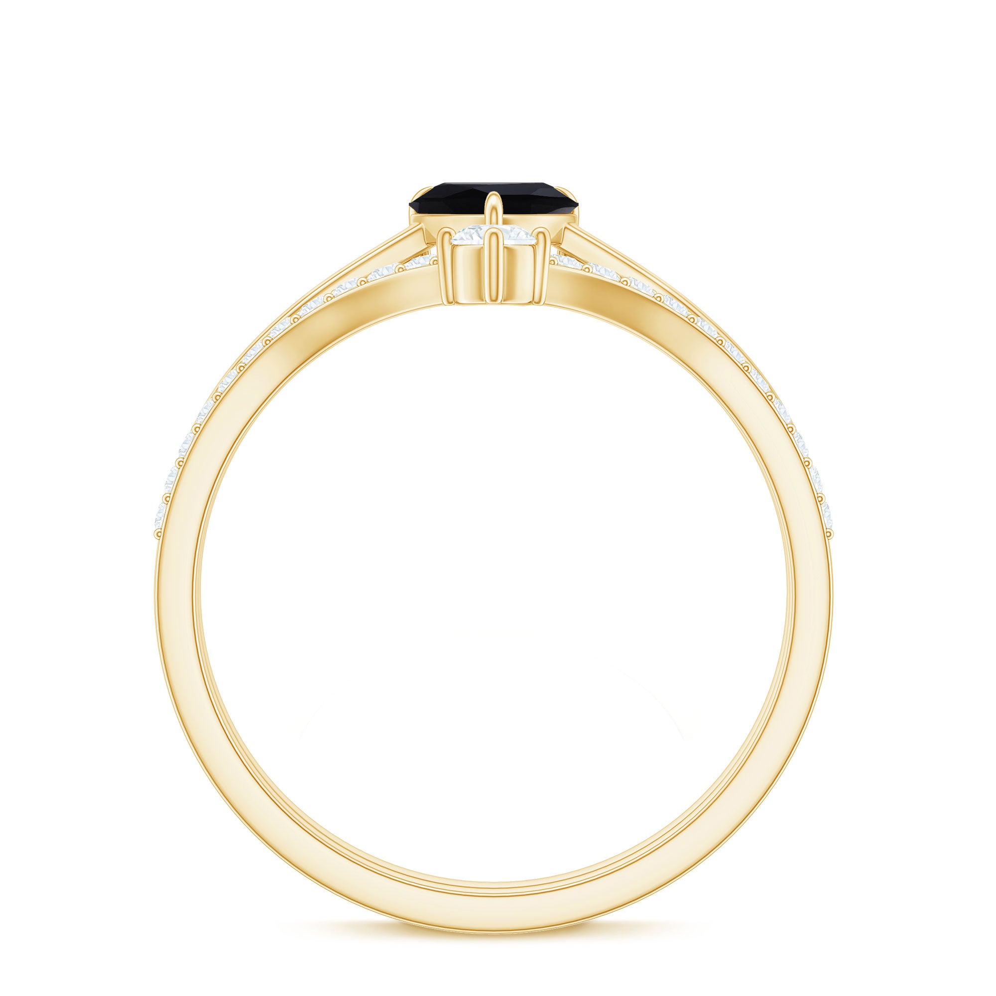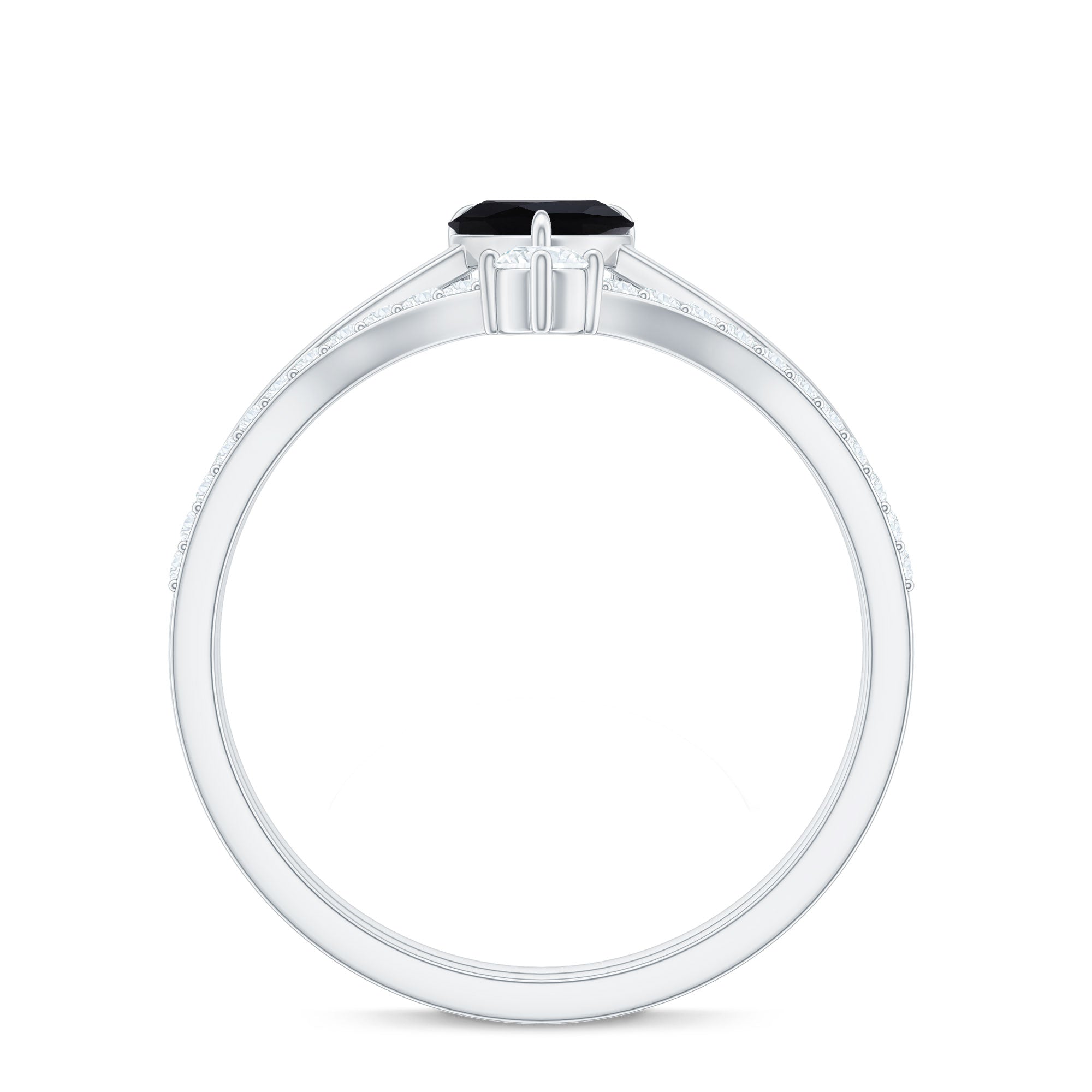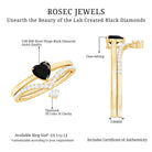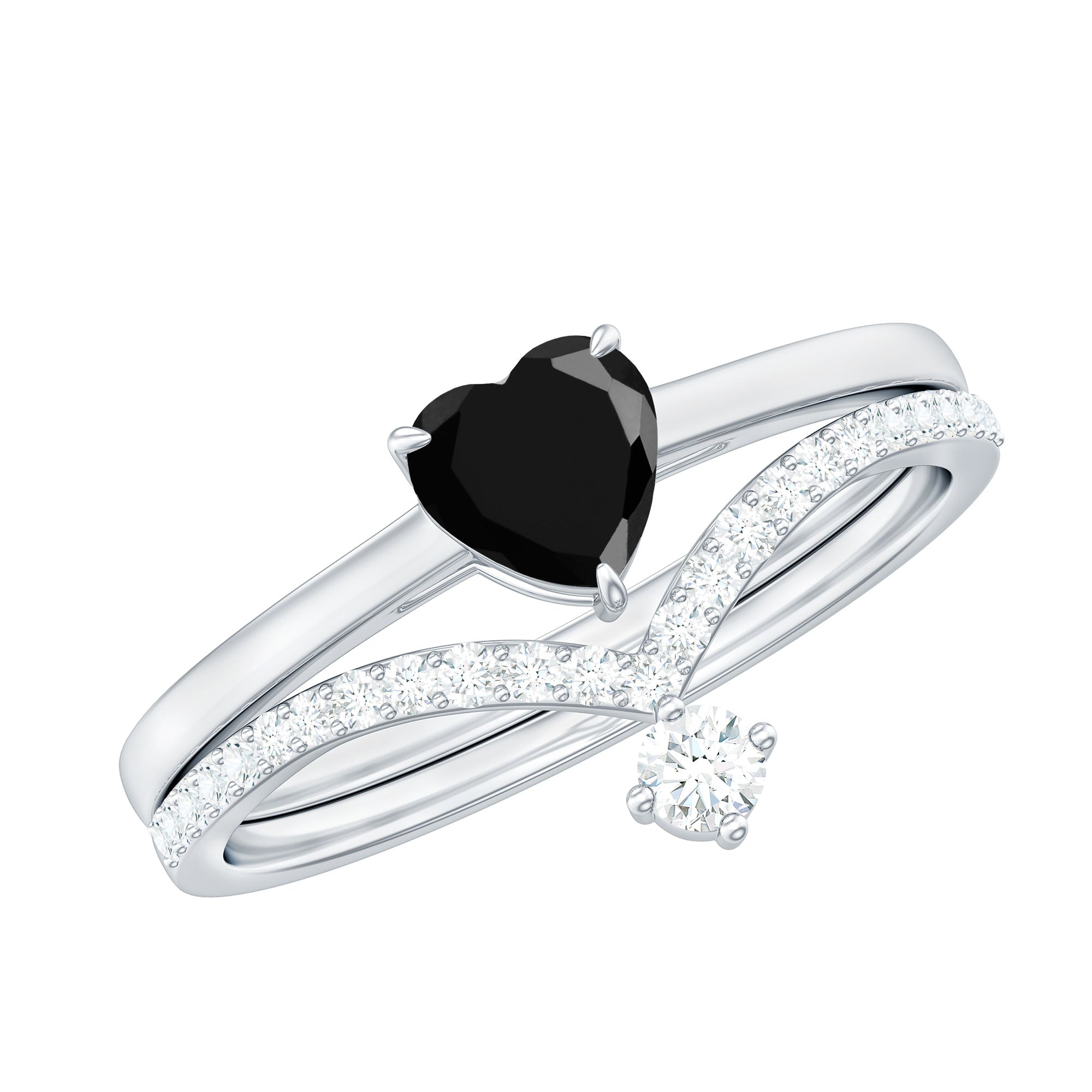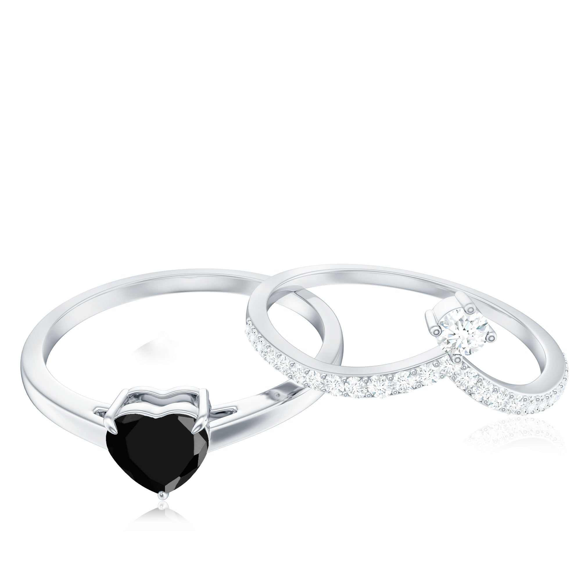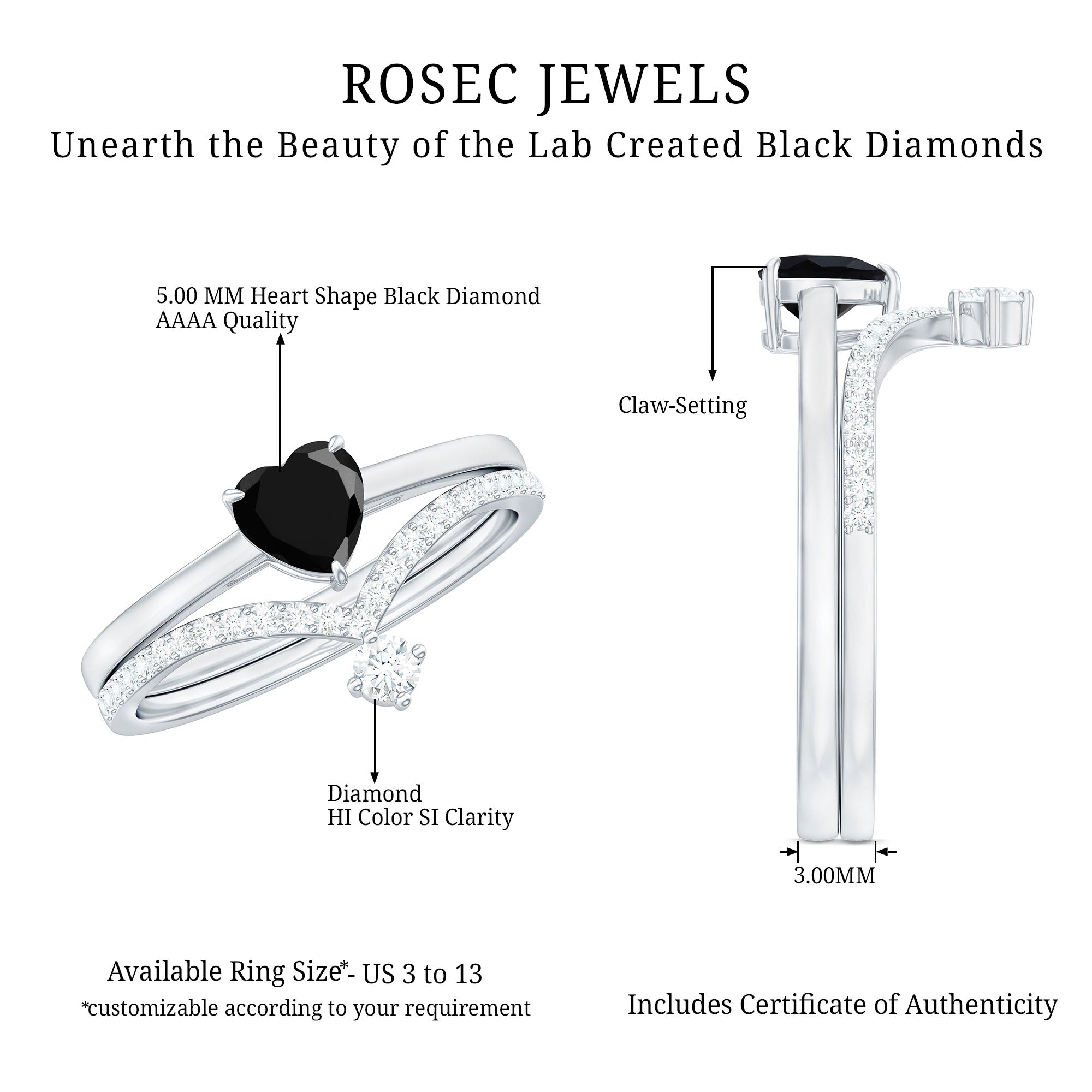 Heart Shape Created Black Diamond Solitaire Ring Set with Diamond