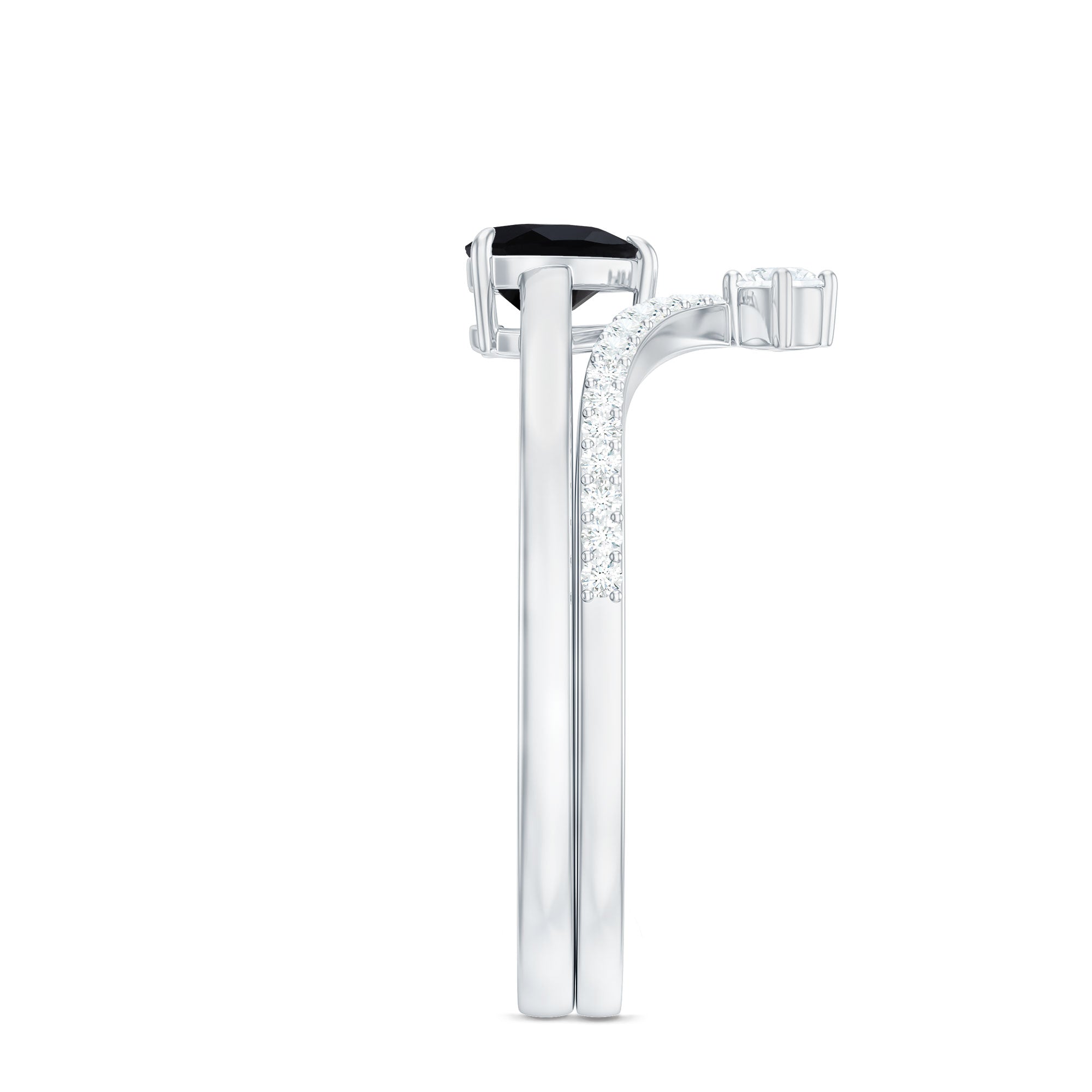 This stunning Solitaire Ring Set showcases a Heart Shape Lab Created Black Diamond secured in Claw Setting while dainty Round Shape Diamonds studded on the enhancer ring. Grab this alluring Created Black Diamond Ring Set for your loved one as a Birthday Gift or Anniversary Gift for your beloved wife.