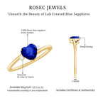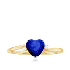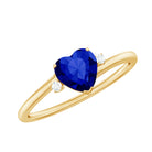 Heart Shape Created Blue Sapphire Solitaire Engagement Ring with Diamond