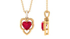 Make a bold statement with this exquisite leaf pendant, a true masterpiece of beauty. At its center, a stunning heart-shaped Created Ruby gemstone is expertly cut to showcase its elegance and allure. The leaf design gracefully adds a touch of nature-inspired beauty, while the diamond-accented bail infuses a sense of glamour and refinement.
