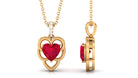 Heart Shape Created Ruby Leaf Pendant with Diamond Accent Bail