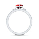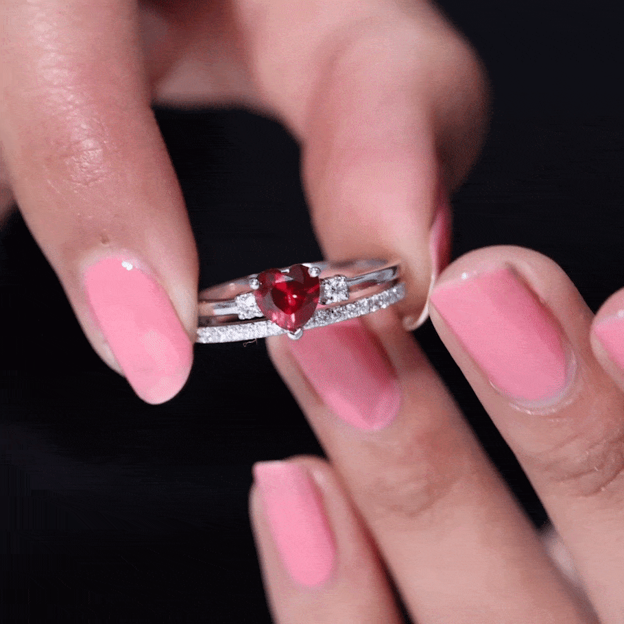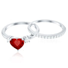 Heart Shape Created Ruby Ring Set with Diamond Enhancer