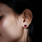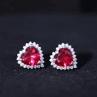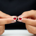 Created Ruby Heart Stud Earrings with Diamond Halo