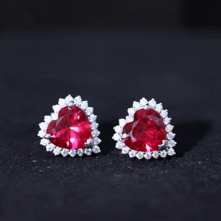 Discover the alluring charm of these Heart Stud Earrings featuring Heart Shaped Lab Created Ruby secured in prong setting encircled by Diamonds which add a touch of glamour to your evening ensemble. The sparkling hues of Ruby and Diamond exhibit a captivating contrast making these earring studs an essential accessory. Whether worn at a special event or worn as an everyday luxury, these Heart Earrings are sure to capture attention.