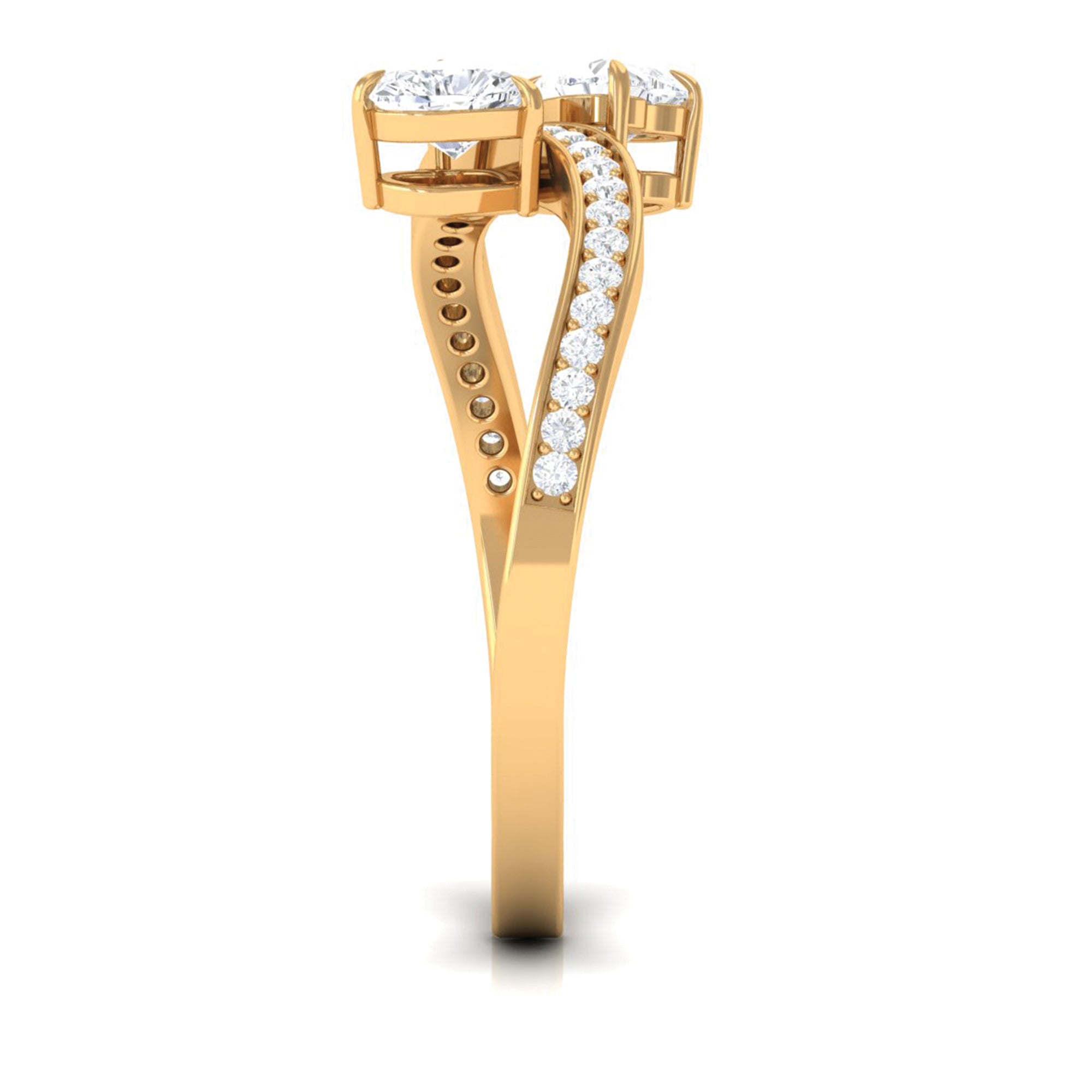 Grab our Toi Et Moi Engagement Ring as it has a remarkable visual appeal with its incredible design. Embellished with Heart Shape Cubic Zirconia and Round Cut Cubic Zirconia studded on its shank. This Heart Ring is crafted with Solid Metal. Make a commitment to a lifelong promise of caring, laughter, and love with her by getting this alluring 2 Stone Ring for her.