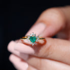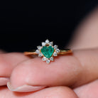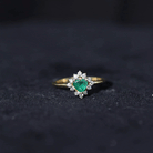 Charming and delightful, the Emerald Heart Ring mesmerizes with its classic elegance. Encircled by a shining halo of Diamond gemstones, a vibrant 5 mm Heart Shape Emerald is the focal point, exuding unmatched beauty. The deep green color represents love and renewal, while the surrounding Diamond gemstones contribute a hint of glamour. Carefully crafted, this AAA Quality Emerald Ring is an ideal combination of sophistication and romance, rendering it a splendid choice for individuals in search of a symbol of lasting love and elegant style. This Heart Promise Ring is a must buy jewelry, which you can flaunt on any special occasion- night party, anniversary party, engagement ring, birthday etc. This Natural Emerald and Diamond Ring having AAA quality emerald and HI color SI clarity diamonds with 1ct total weight.