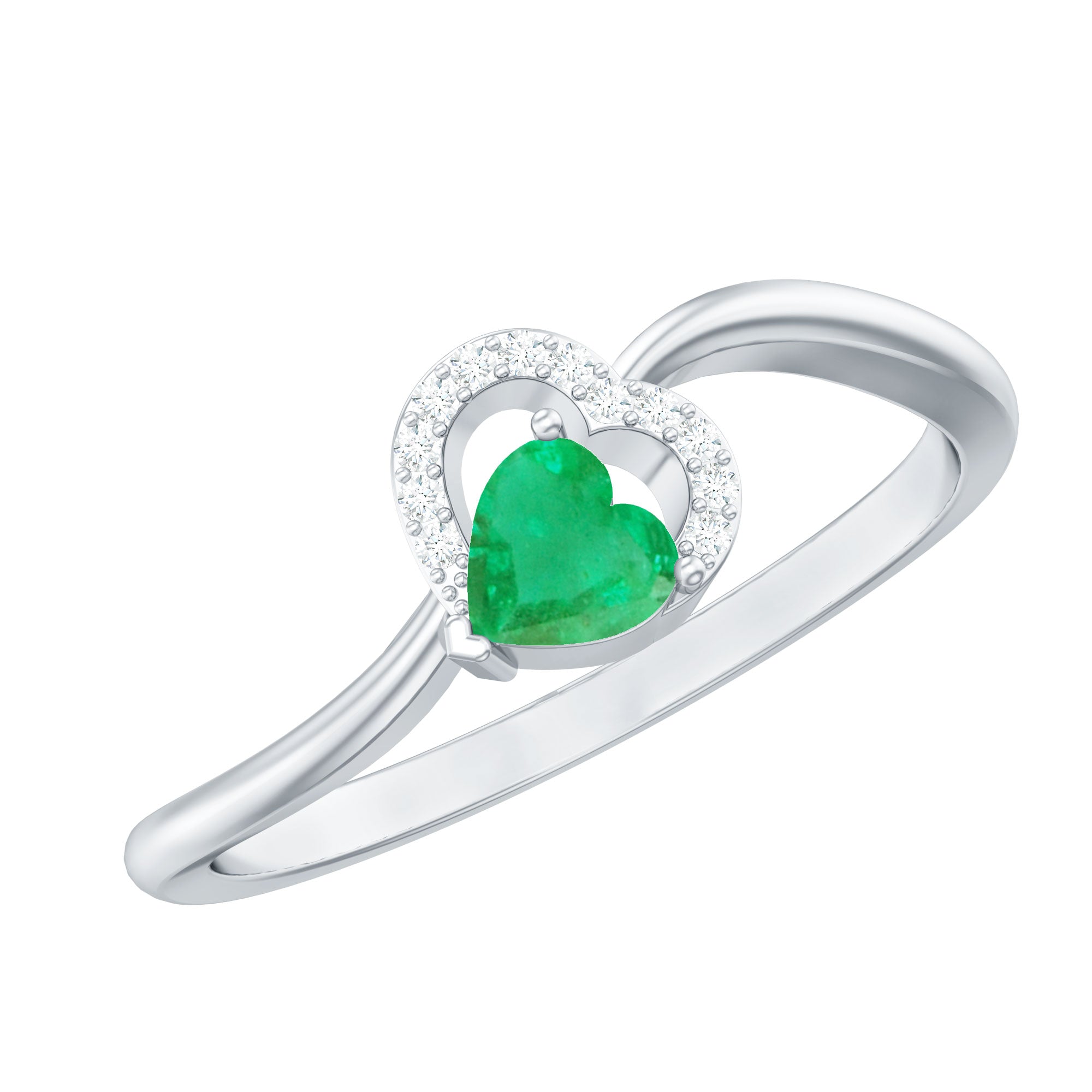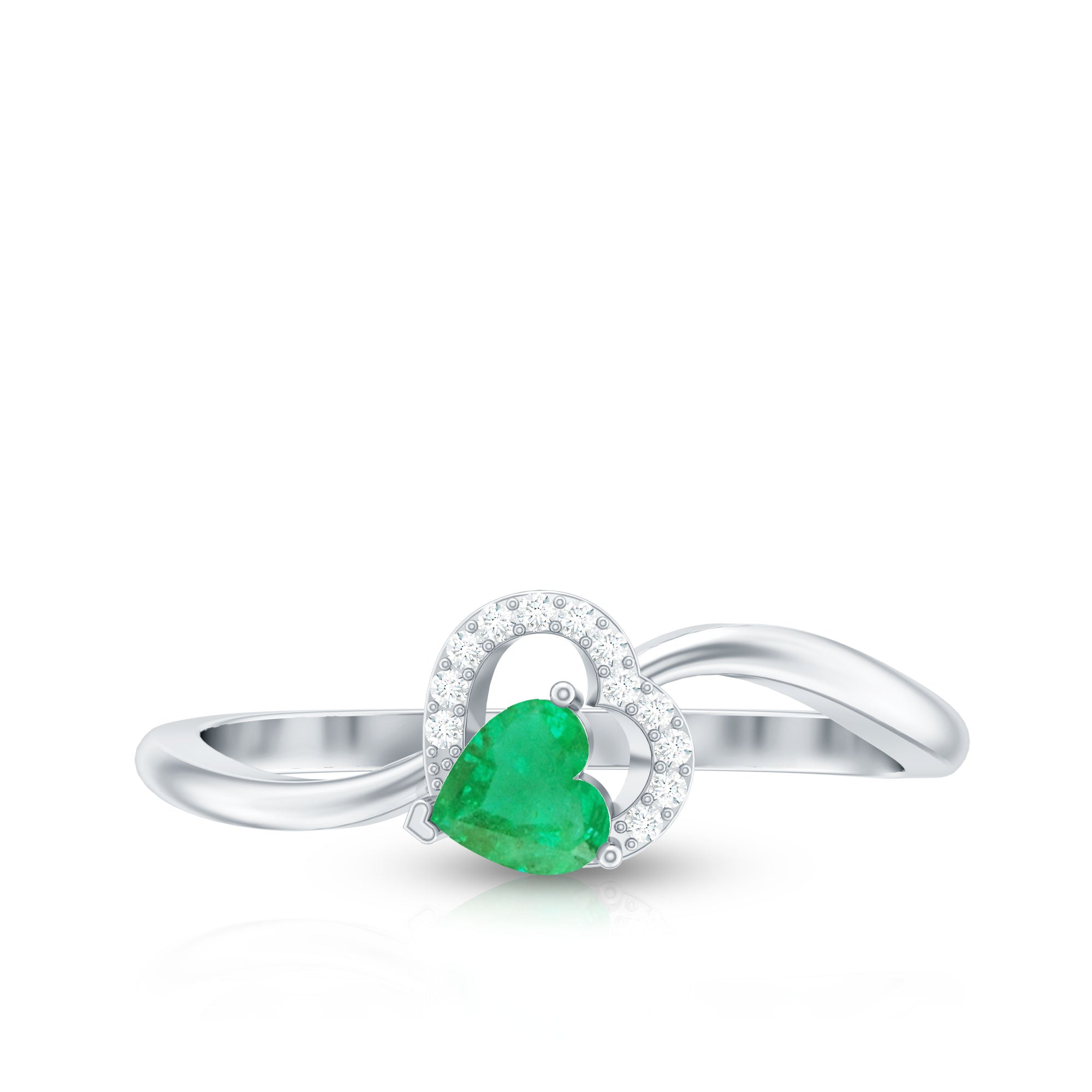 Ignite a spark of everlasting affection with this Heart Promise Ring, a delicate celebration of love in its most heartfelt form. At the center is a horizontally set 5 mm Heart Shape Emerald in Prong Setting, its vibrant green glow capturing the depth of true devotion. Encircling the AAA Quality Emerald, a shimmering heart shaped frame of Diamond stones adds a touch of brilliance, reflecting the endless light that love brings into our lives. The gracefully Curved Band creates a flowing design that symbolizes two hearts intertwined in perfect harmony. This enchanting Emerald Heart Ring is a promise and a keepsake of shared moments that last a lifetime. Whether given as a token of love, a meaningful gift or a romantic gesture to mark a special occasion, this Emerald Proposal Ring carries a message of eternal devotion. Presented in a signature jewelry box and available in multiple sizes, this Emerald Diamond Ring is designed to be treasured, worn and admired. With every glance, this Commitment Ring for Her whispers a story of romance and a love that grows brighter and more beautiful with each passing day.